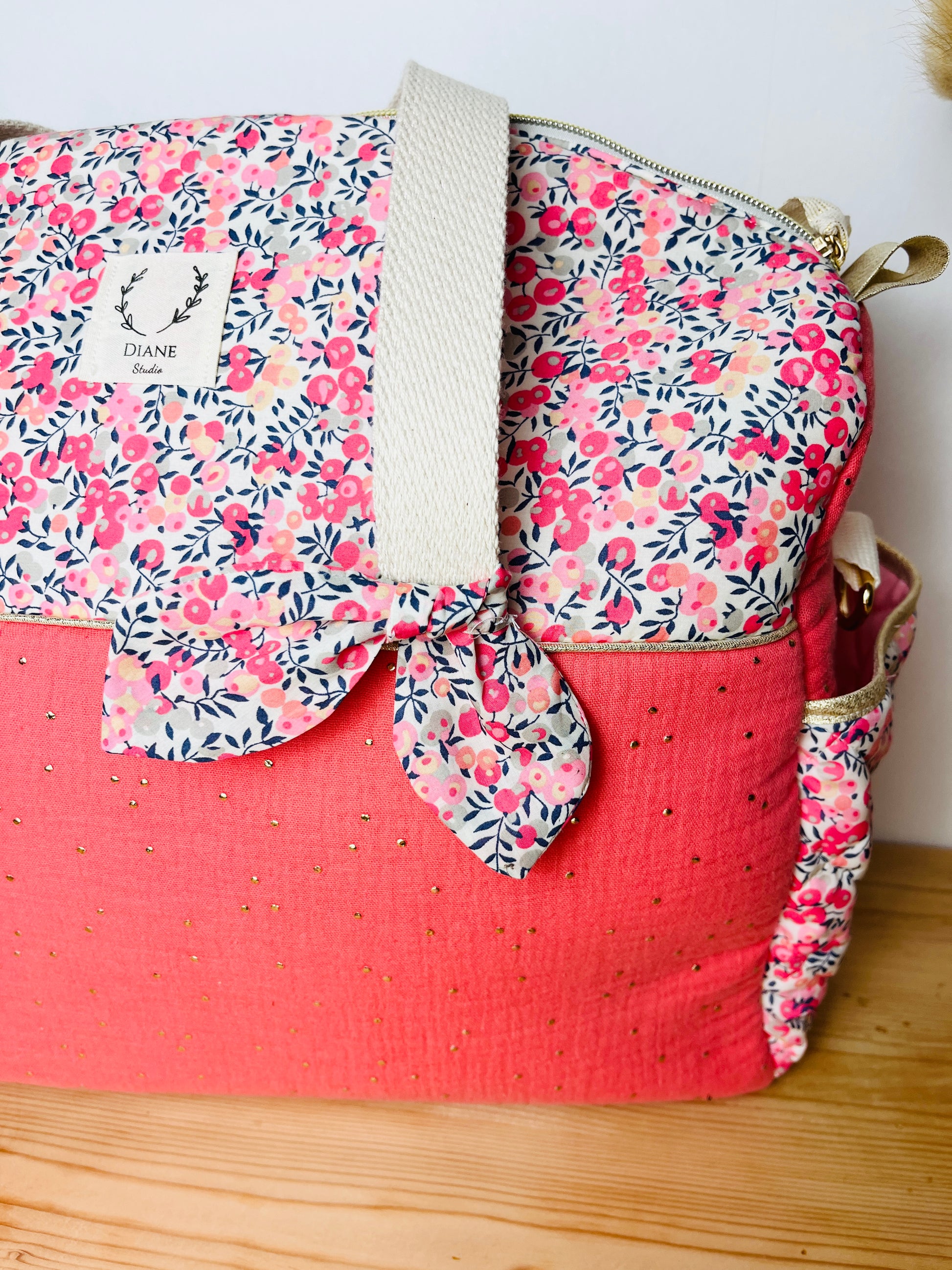 Aimé le sac à langer corail et Pois de senteur Personnalisable