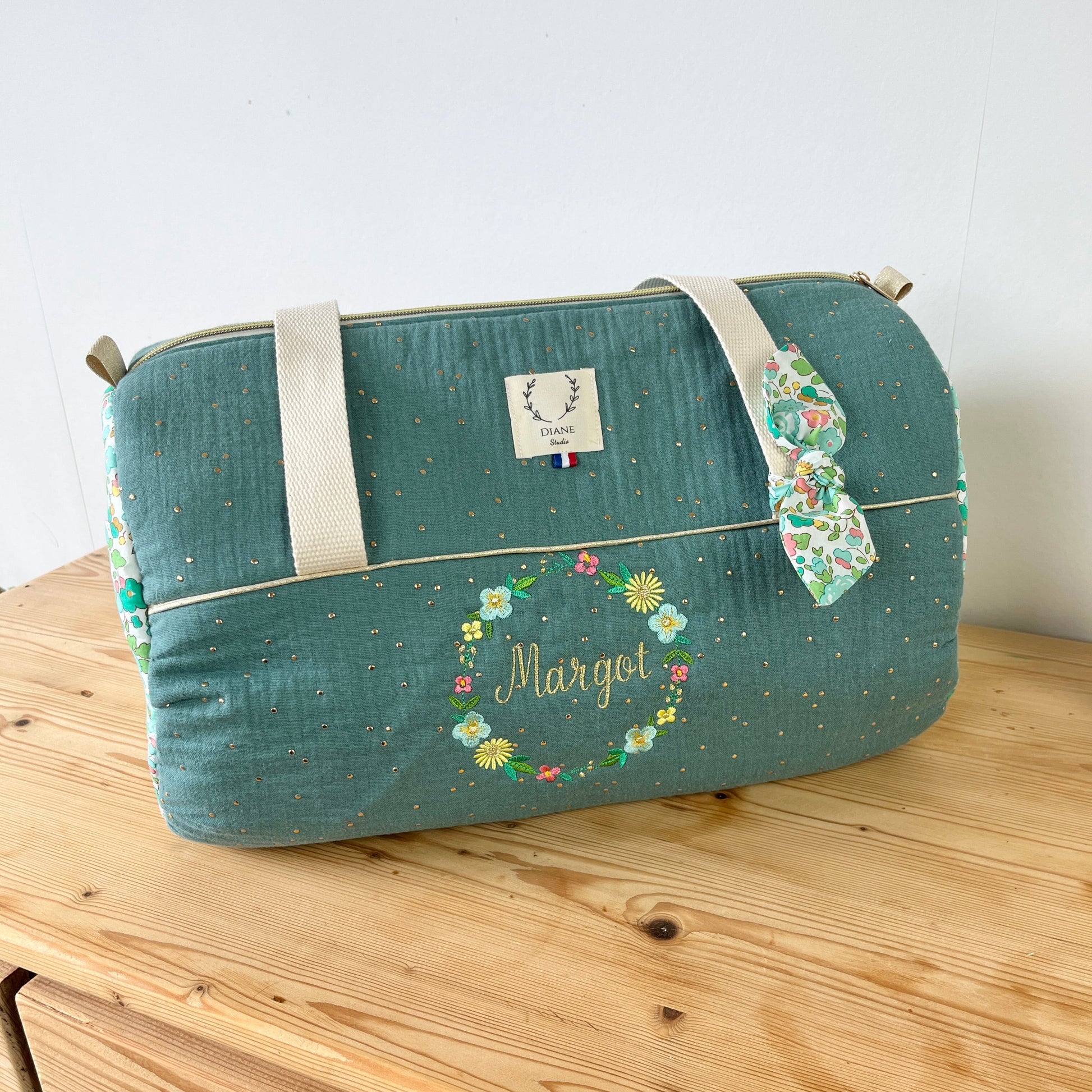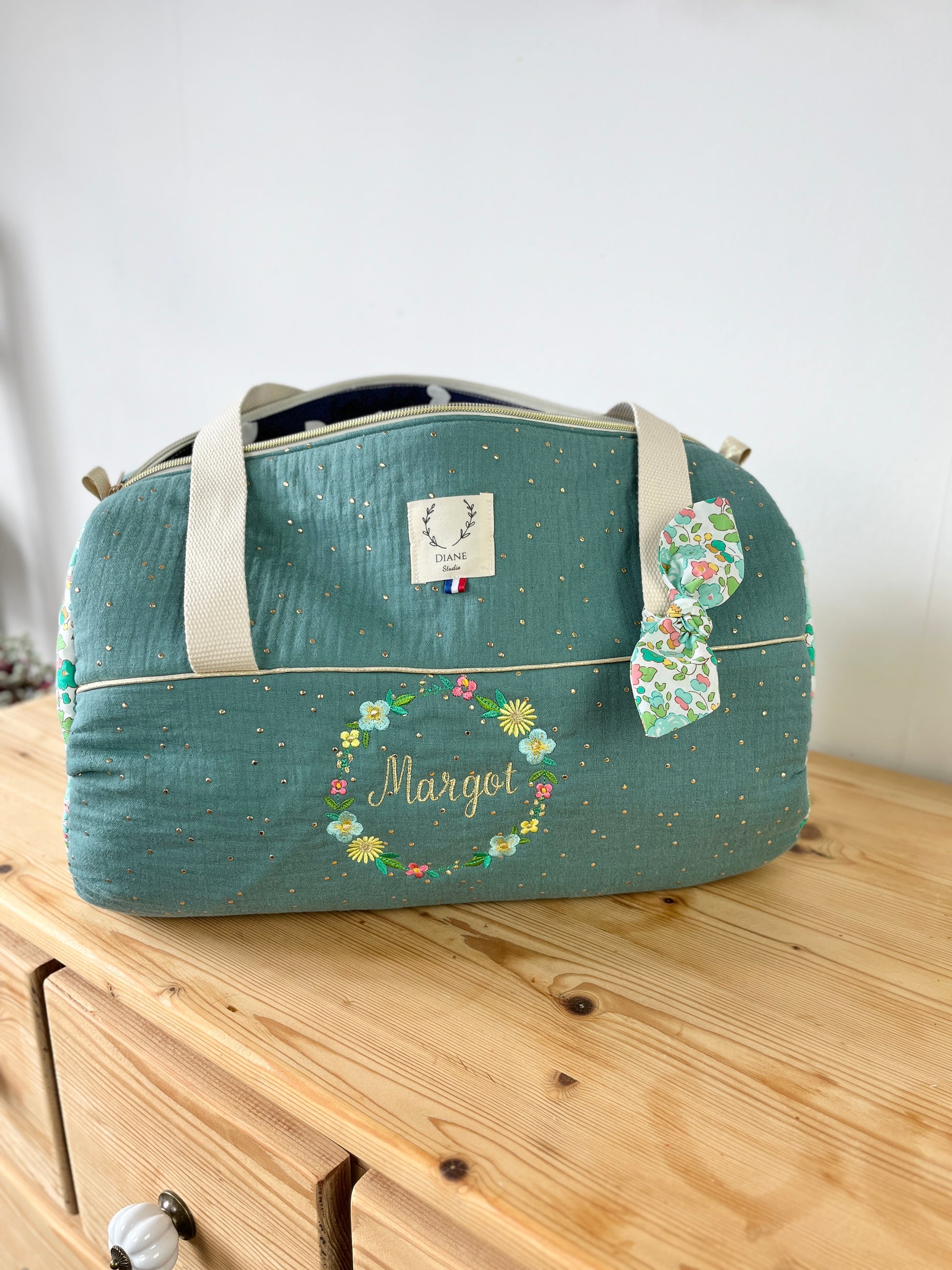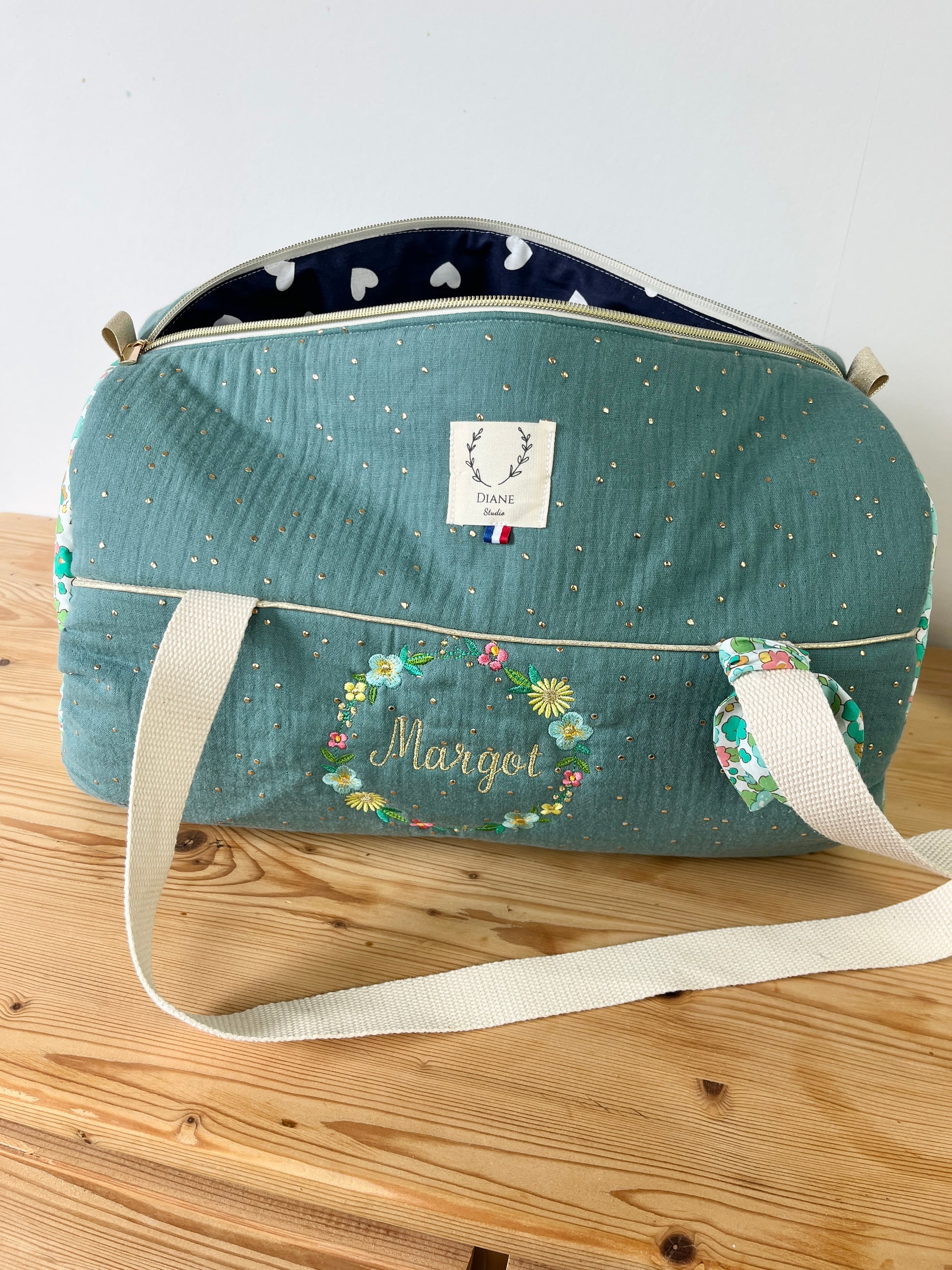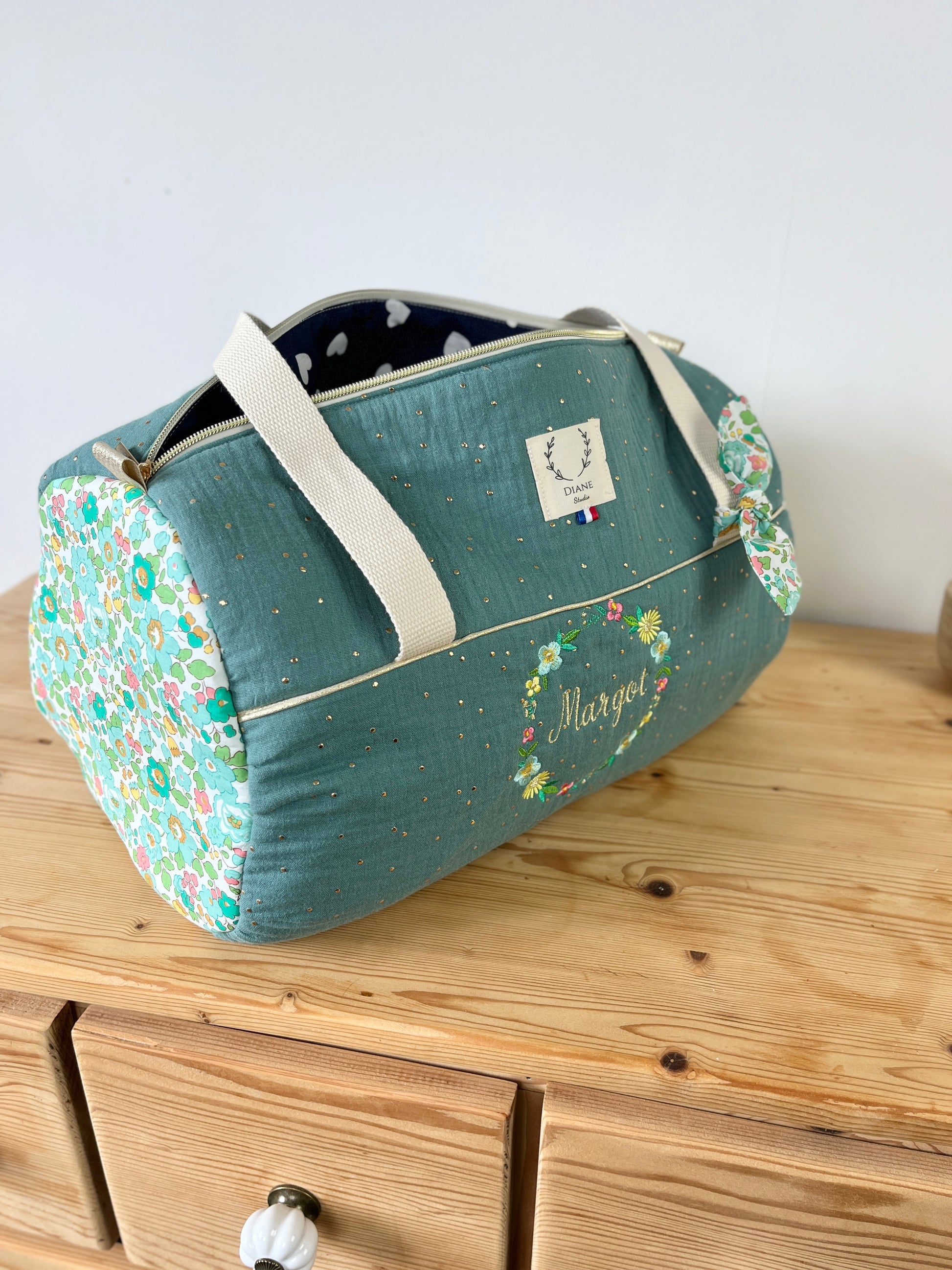 Louison le sac polochon enfant Liberty Betsy menthe et couronne brodée Personnalisable