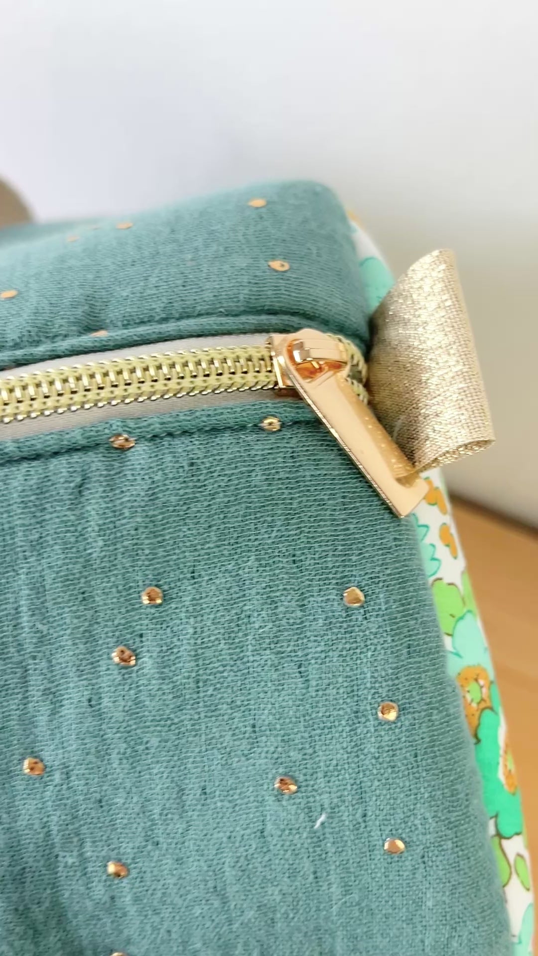 - Fermeture à glissière en nylon doré avec curseur métallique doré pour une touche élégante et durable.