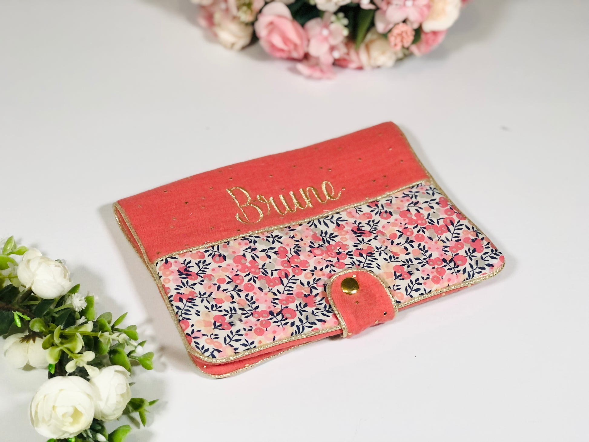Fabriqué à la main dans mon atelier, ce protège-carnet est conçu dans un ou deux tissus de votre choix parmi le catalogue, incluant les magnifiques Liberty of London® ou des cotons imprimés. Un passepoil doré élégant souligne délicatement les contours, ajoutant une touche chic et intemporelle.
