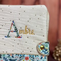 Large snap pocket at the front for quick access (with bias binding or gold trim ).