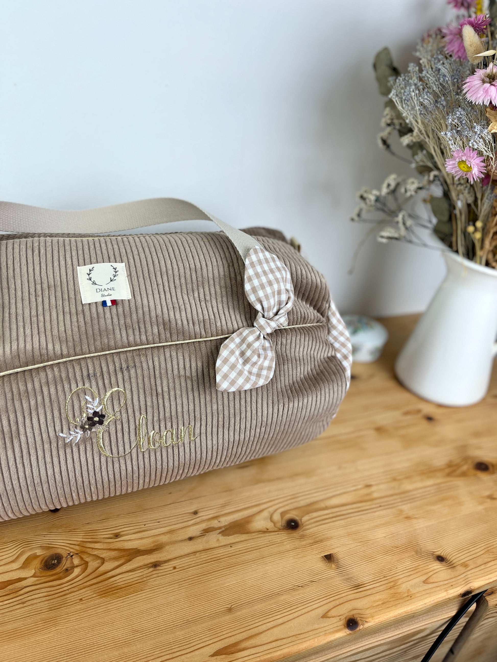 Louison le sac polochon enfant velours camel et vichy beige Personnalisable