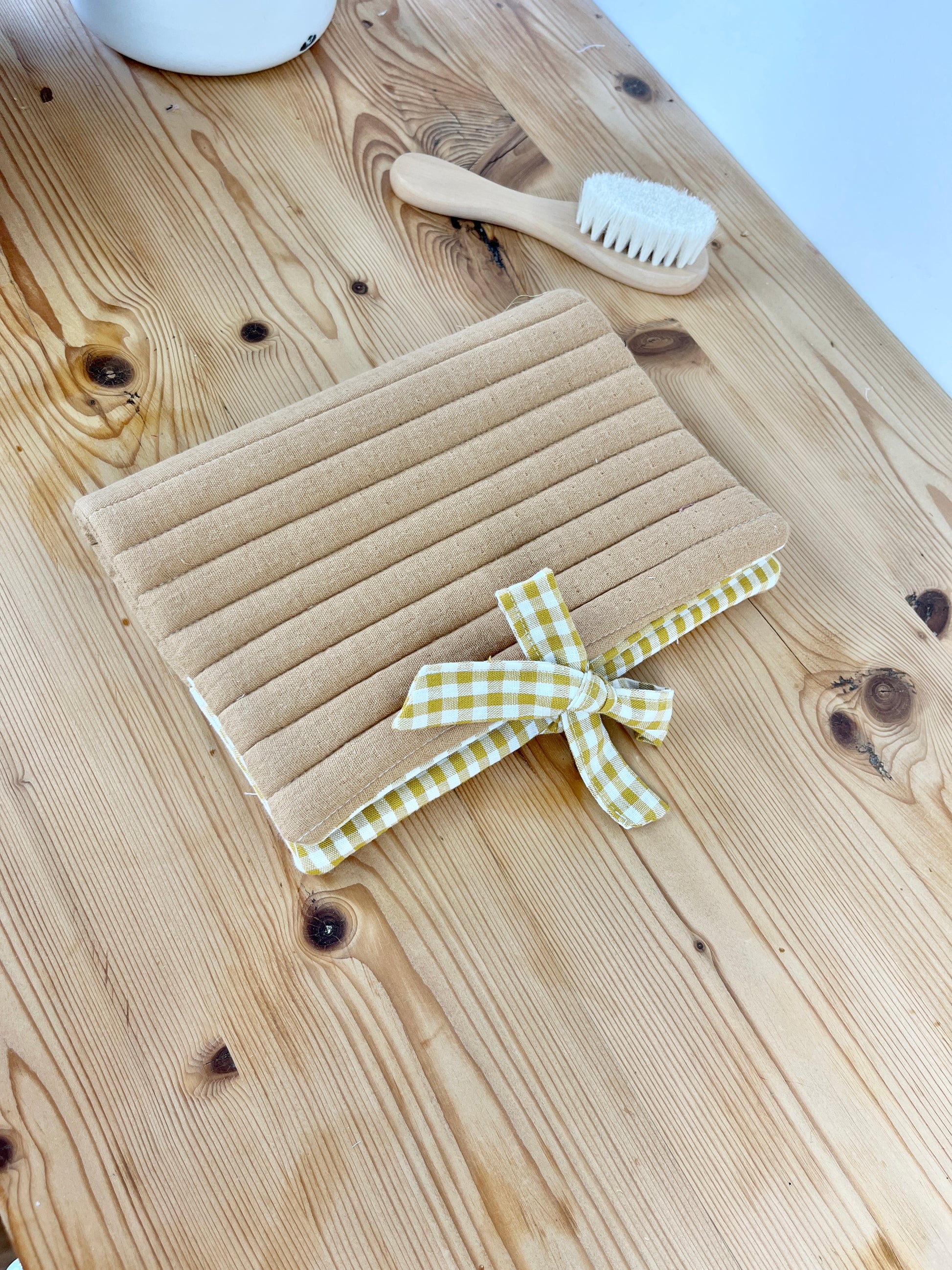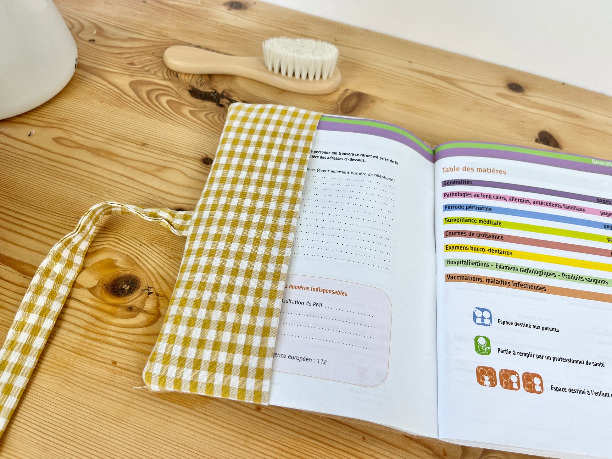 🎀 Finitions délicates : Deux petits liens en vichy permettent de le fermer joliment, et des rabats intérieurs en vichy assurent un maintien parfait du carnet de santé.