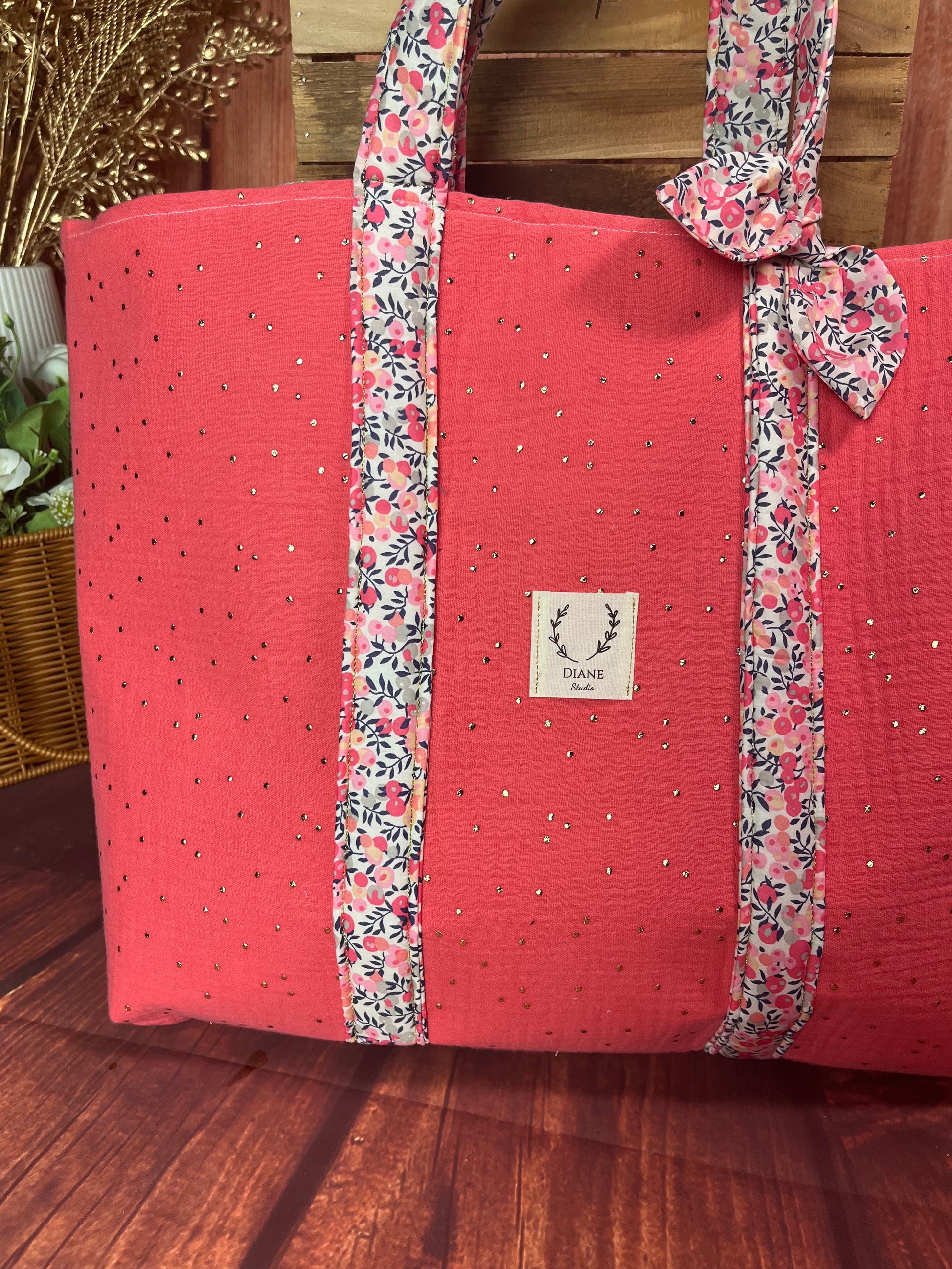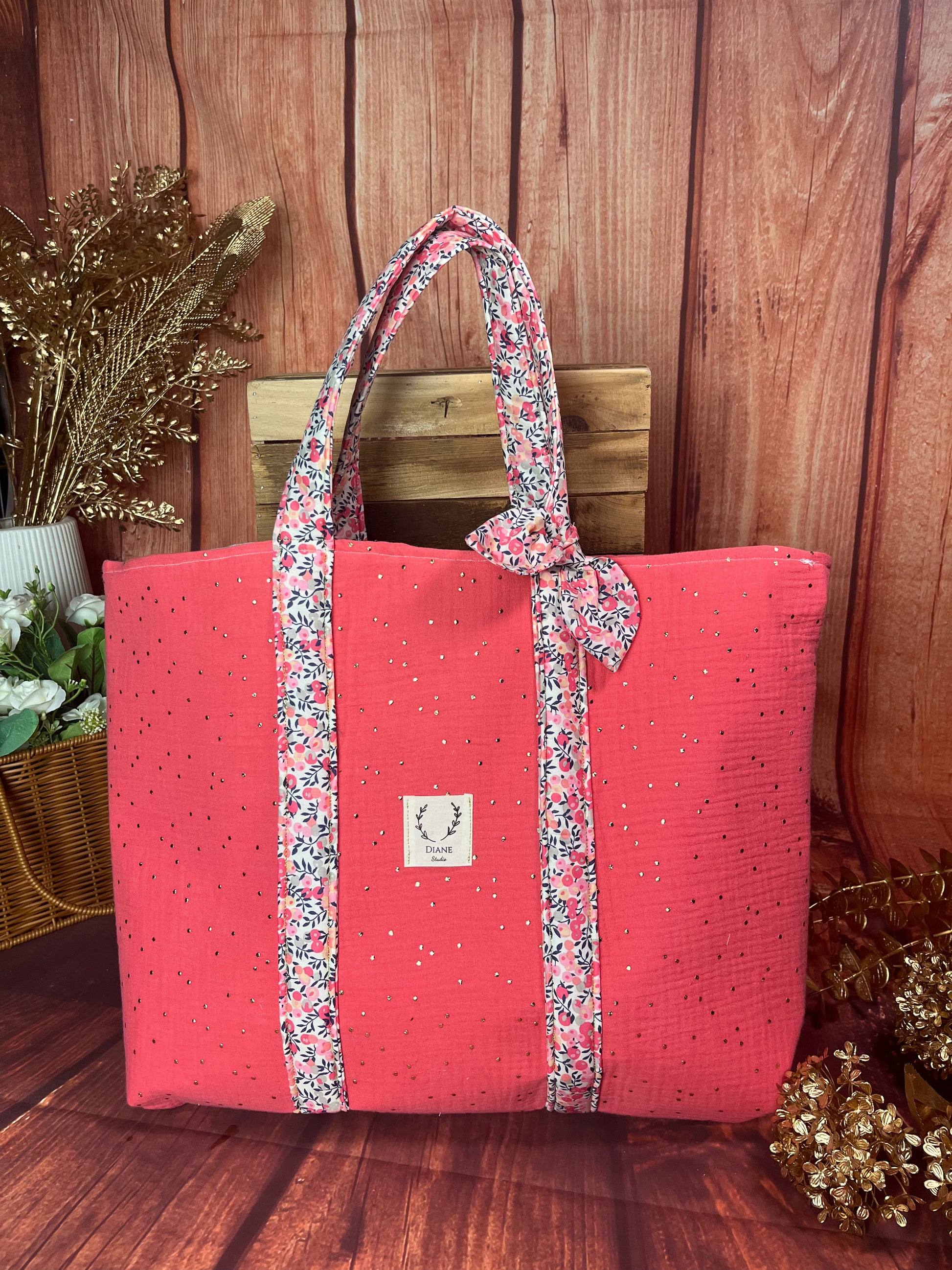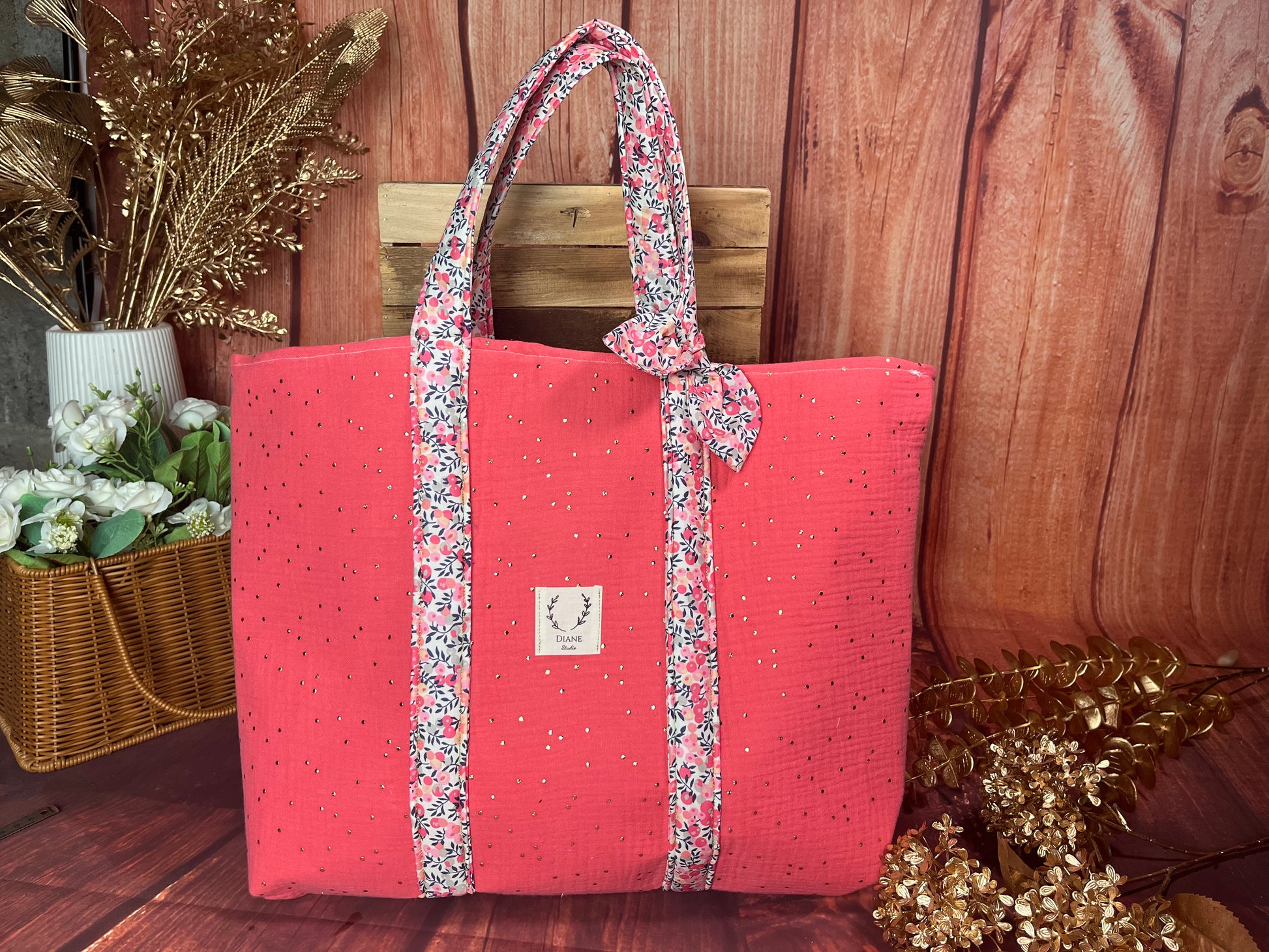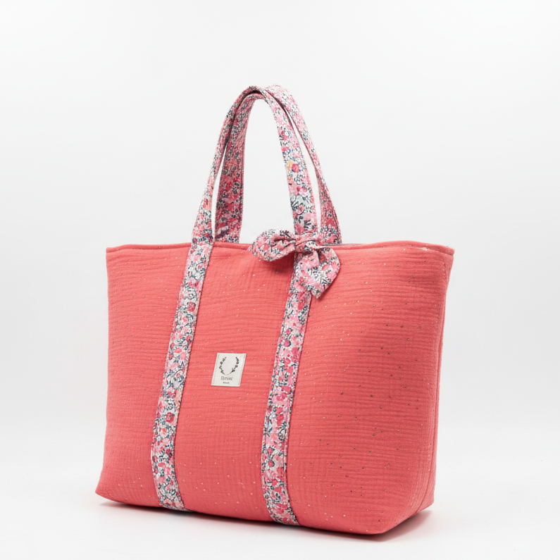 Le grand cabas Adélaïde corail et anses Liberty Senteur Personnalisable
