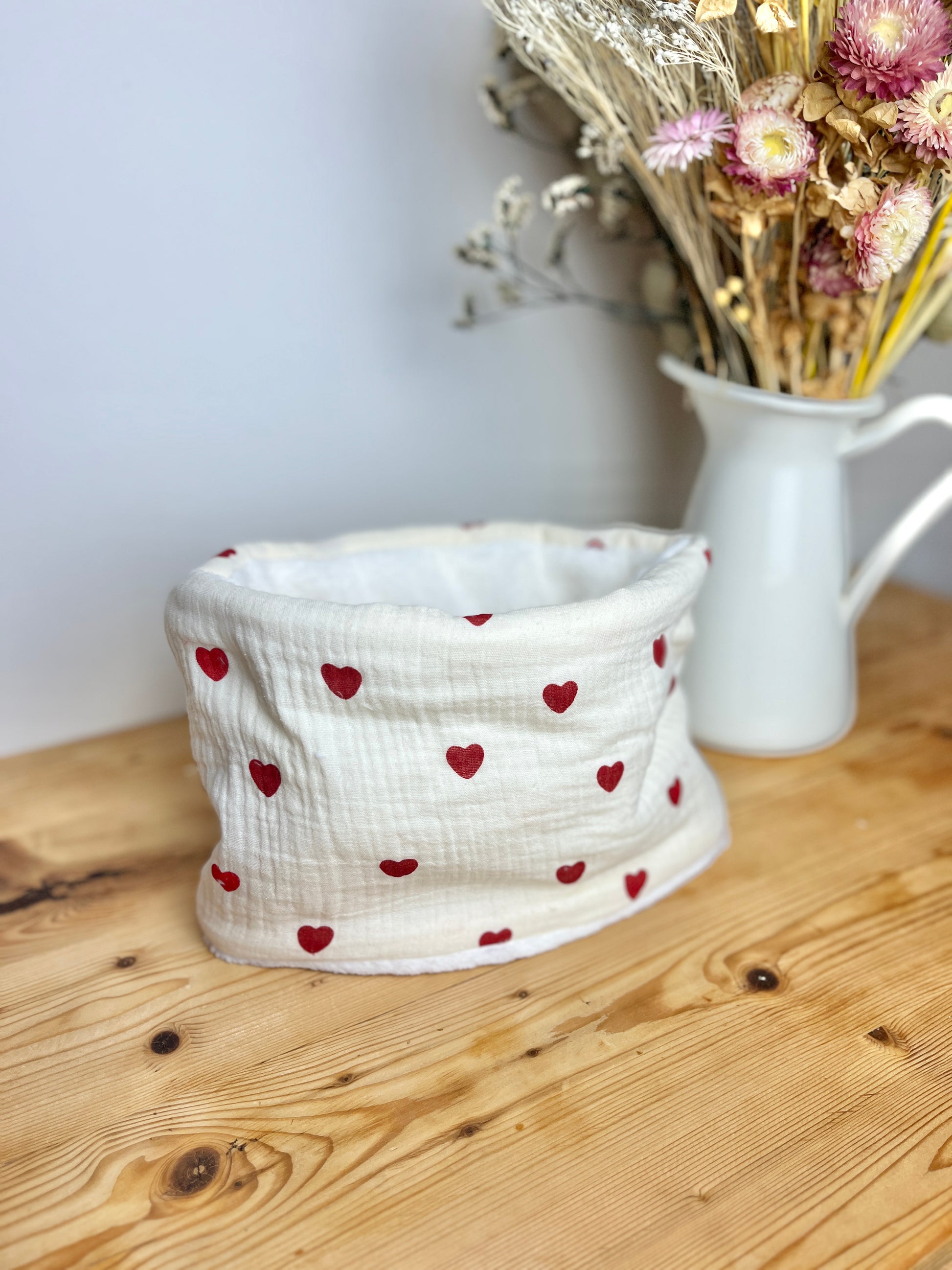 Le tour de cou enfant double gaze coeurs rouges