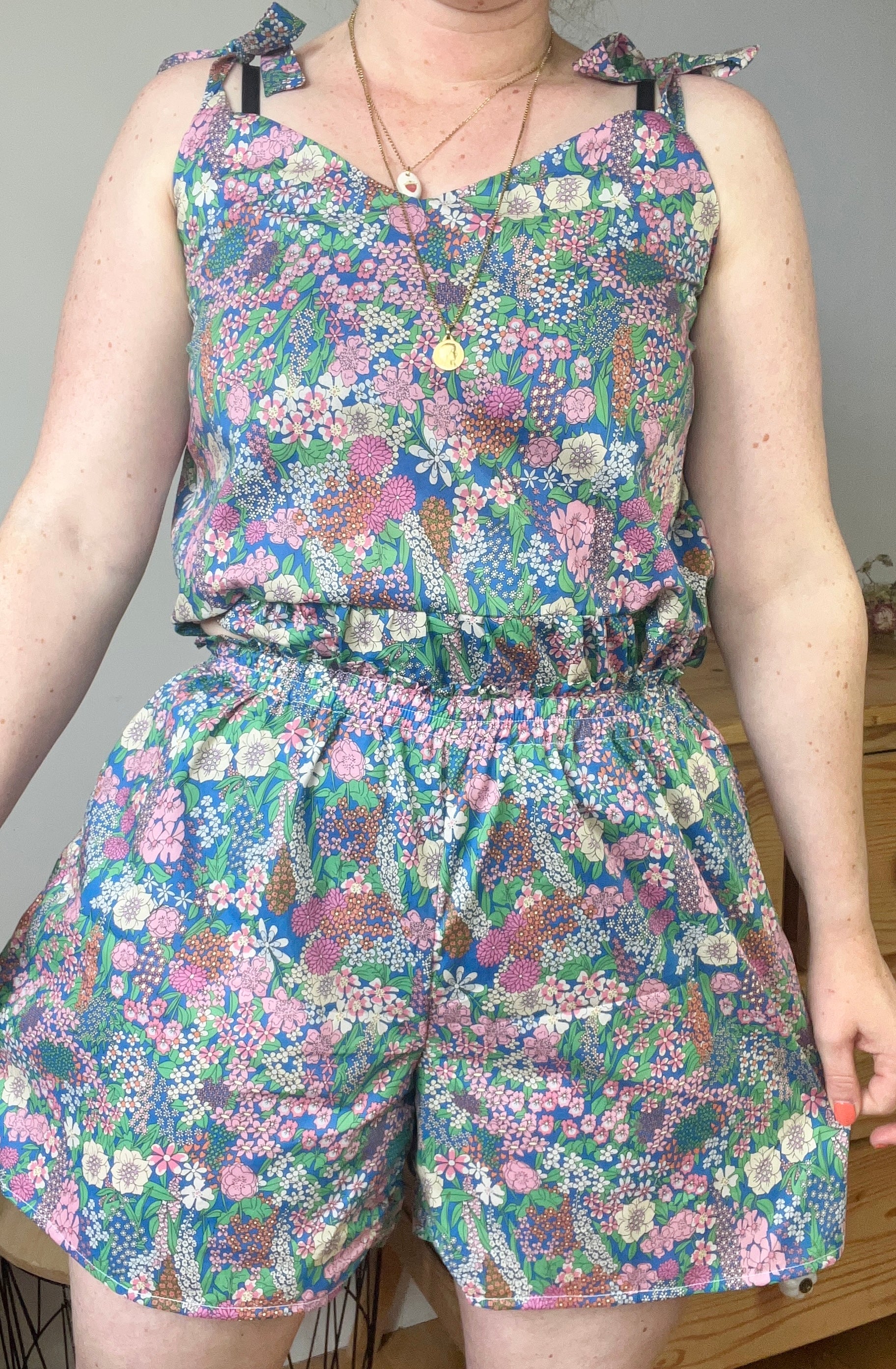 Isaure le short rétro taille haute coton fleuri ciara pervenche