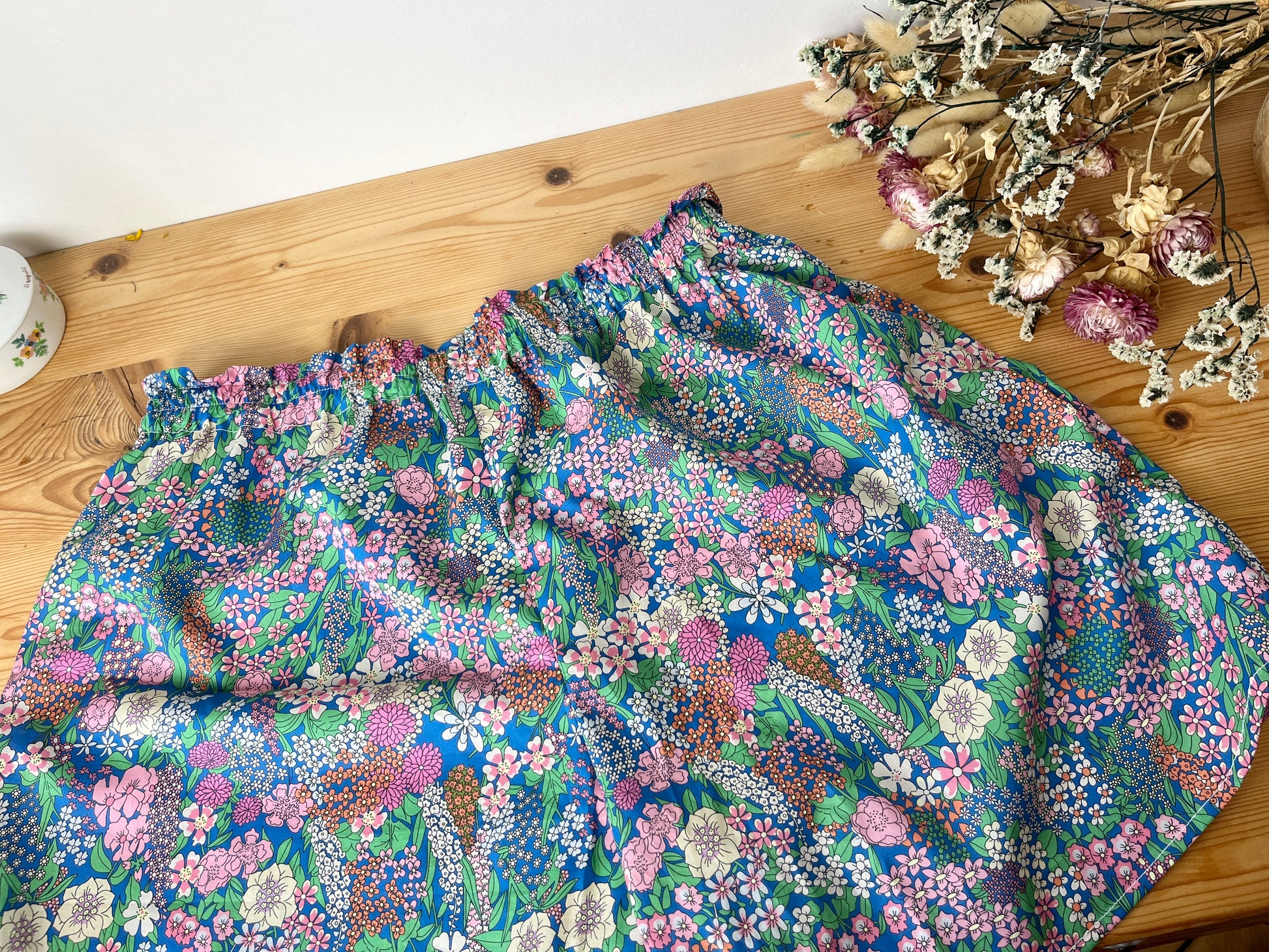 Avec du Liberty of London, qui est un tissu fin et très doux, le rendu sera plus fluide ainsi qu'avec de la double gaze, tandis qu'avec un coton hors gaze et Liberty donnera une coupe plus structurée.