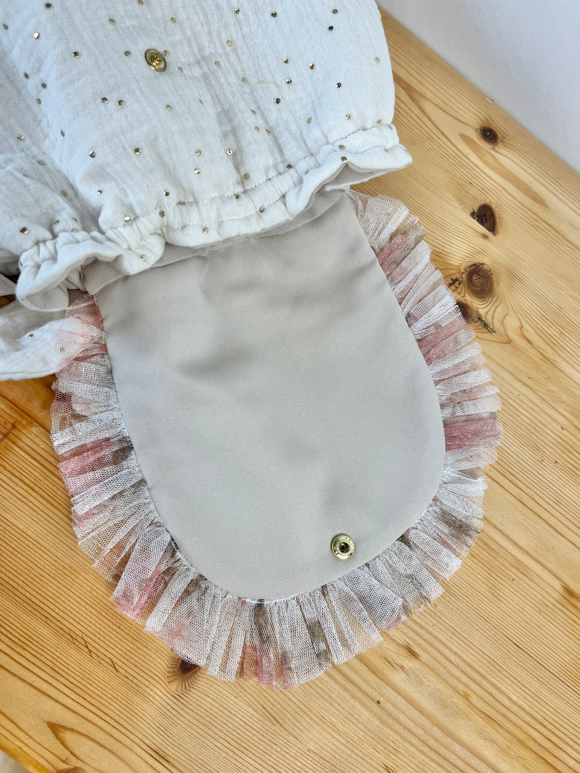 🌸 Matériaux de qualité : coton doux et résistant, avec passepoil doré autour du rabat (supprimable sur demande).