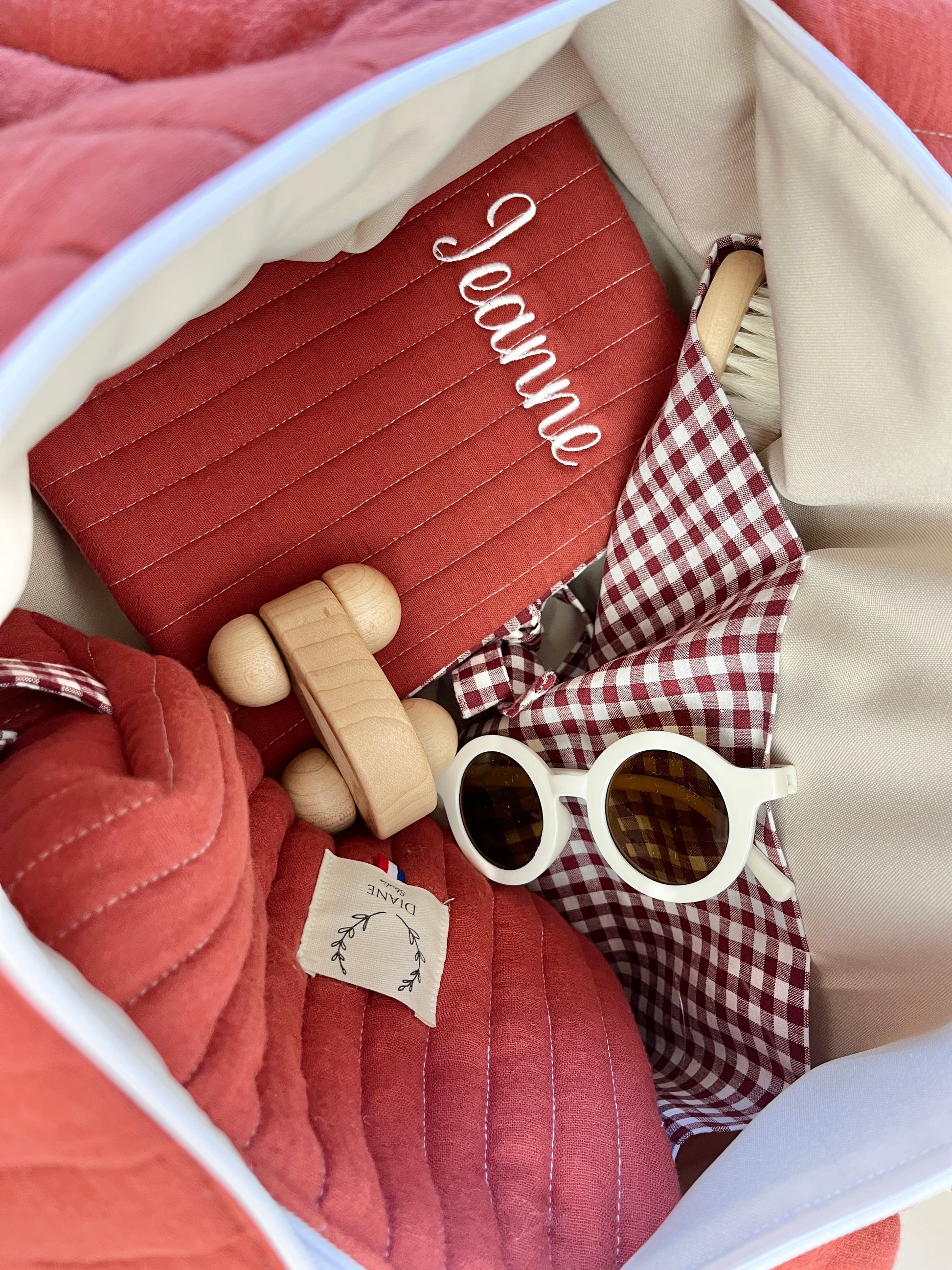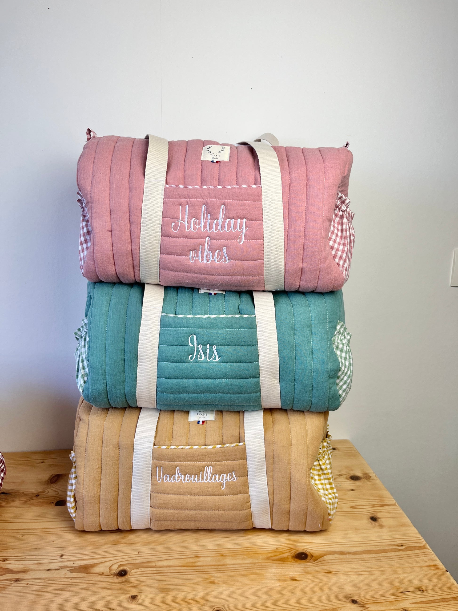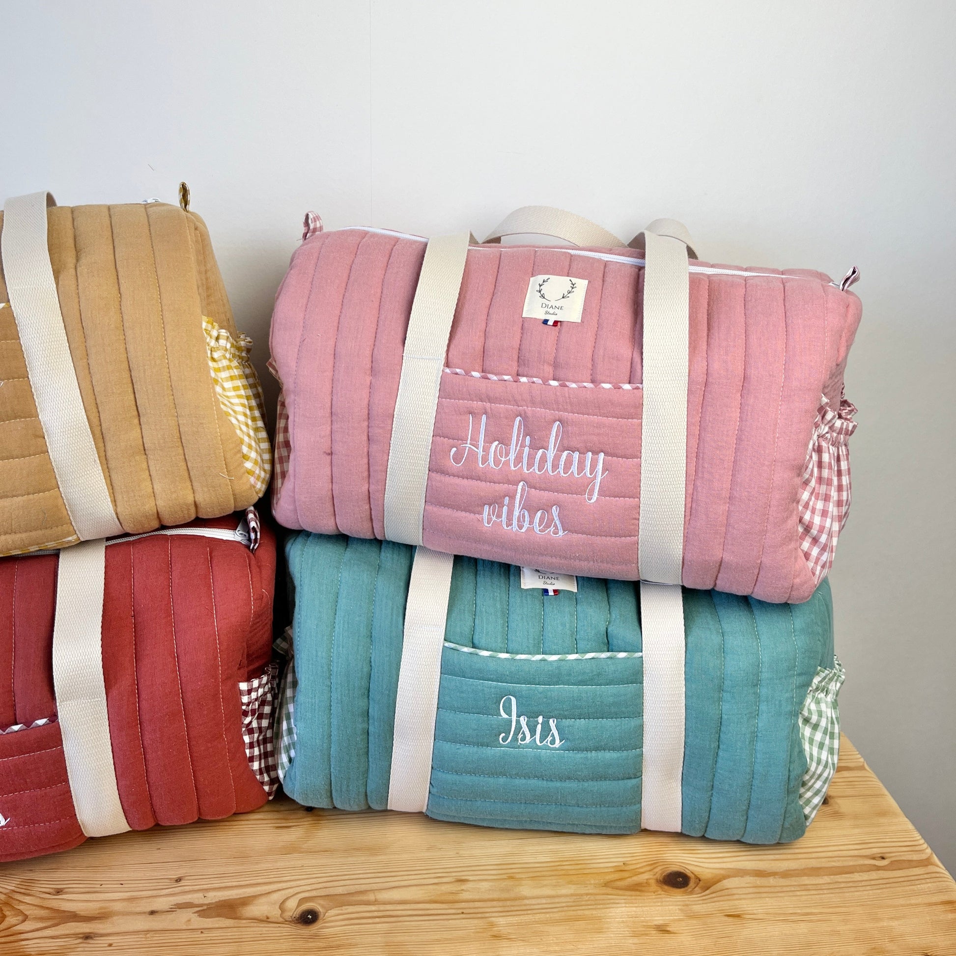 - Personnalisation : Brodez un prénom, une initiale , un texte et choisissez vos tissus, pour un sac unique, idéal pour toute la famille !