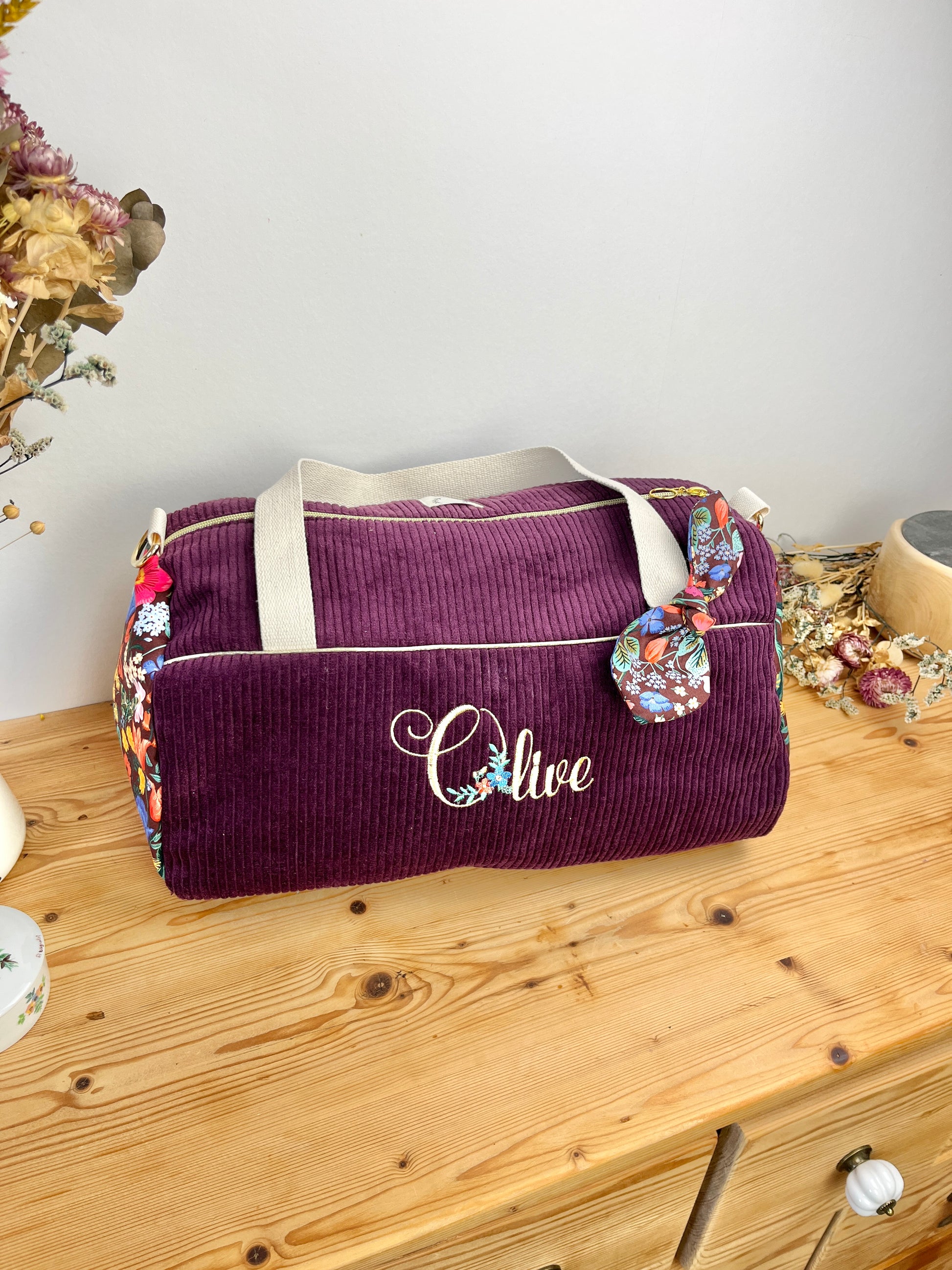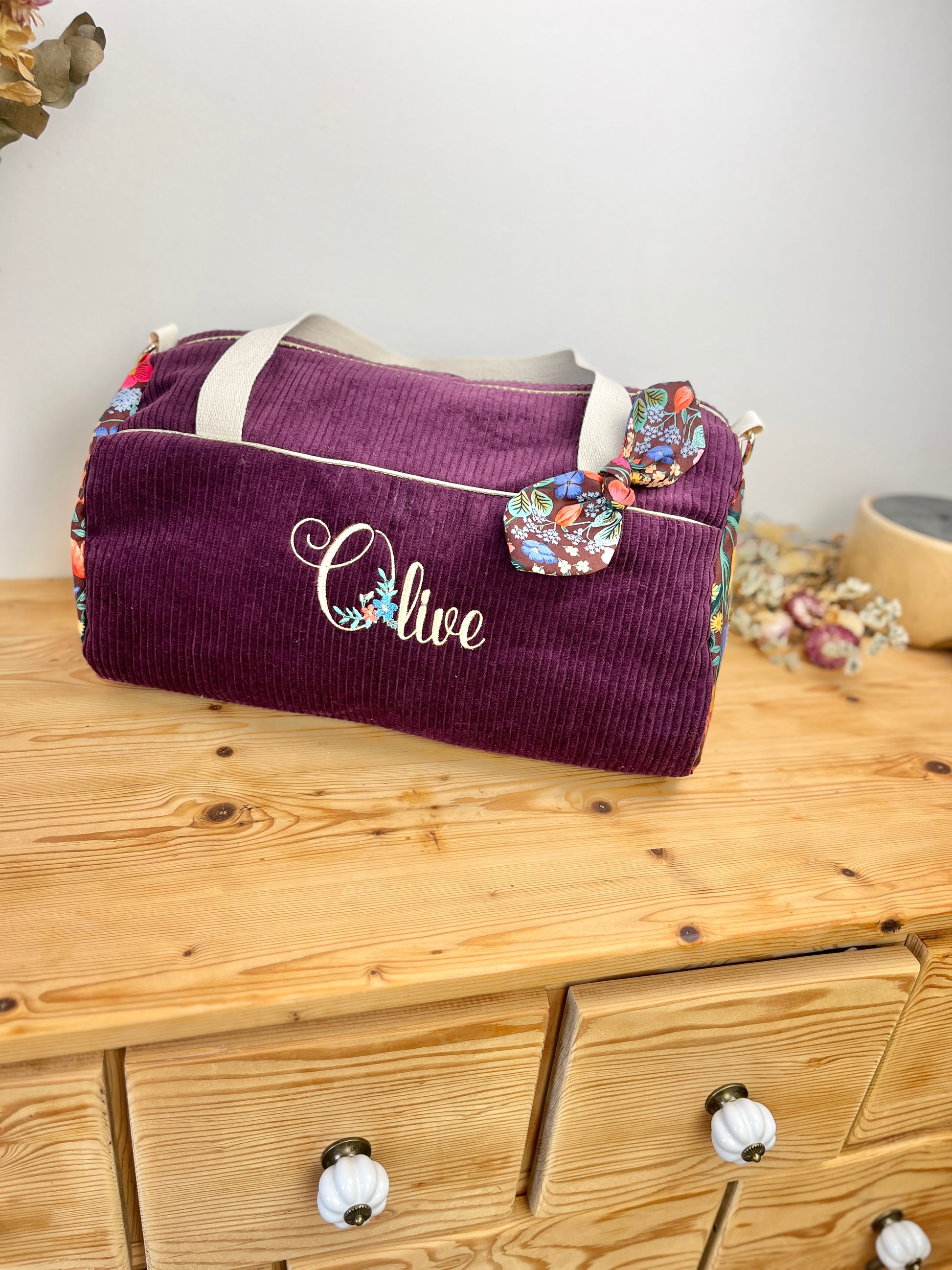 Louison le sac polochon enfant velours prune et blossom burgundi Personnalisable