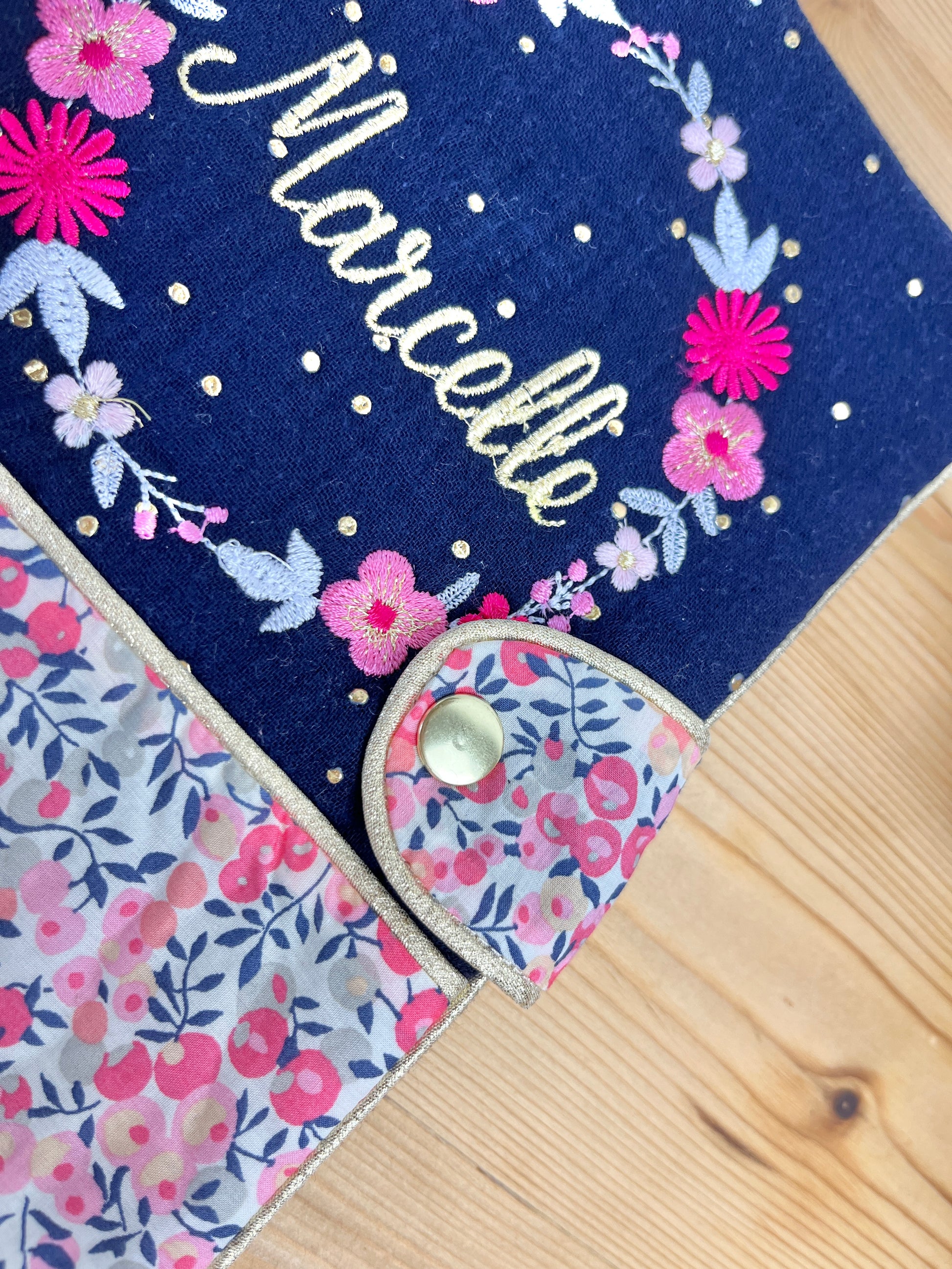 Mahé le protège carnet gaze nuit doré et Liberty Pois de senteur Personnalisable