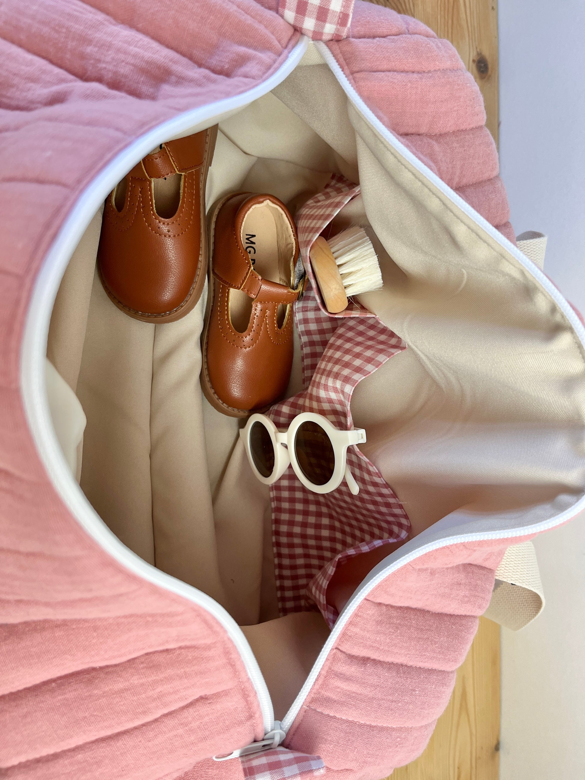 - Intérieur doublé en tissu beige avec poche intérieure en Vichy