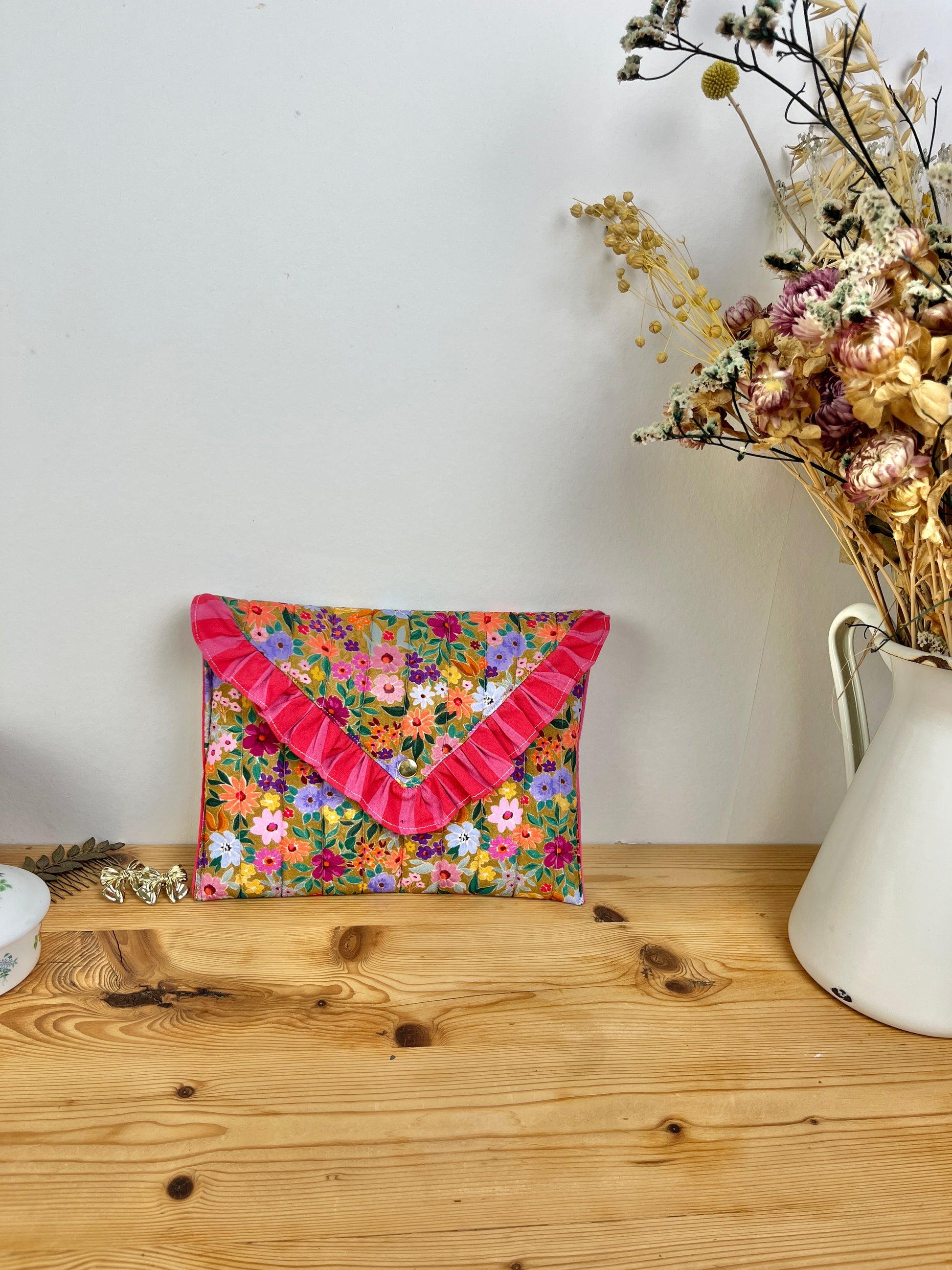 Alliez style et praticité avec cette pochette raffinée, au matelassage soigné et au joli volant ! Conçue pour protéger vos essentiels, elle est parfaite pour une tablette, une liseuse, un ordinateur portable, pour glisser vos affaires, ou encore comme pochette de soirée.