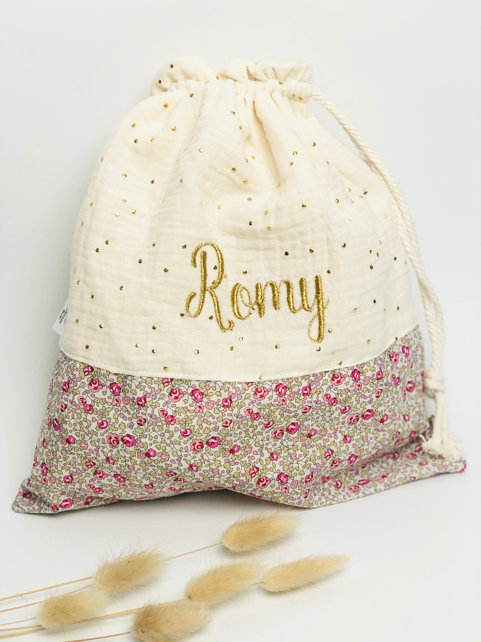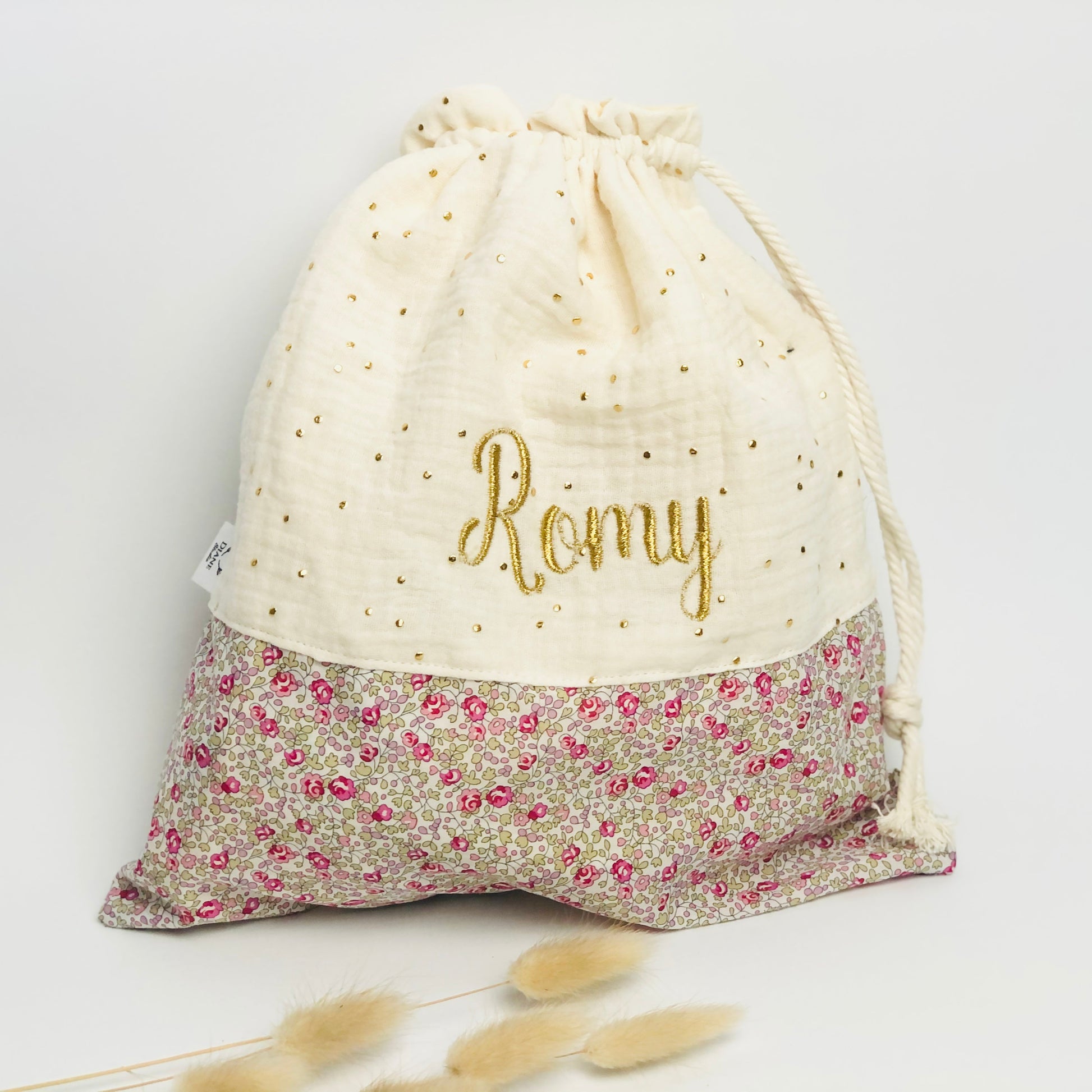 Pochon personnalisé Liberty Eloïse rose Personnalisable