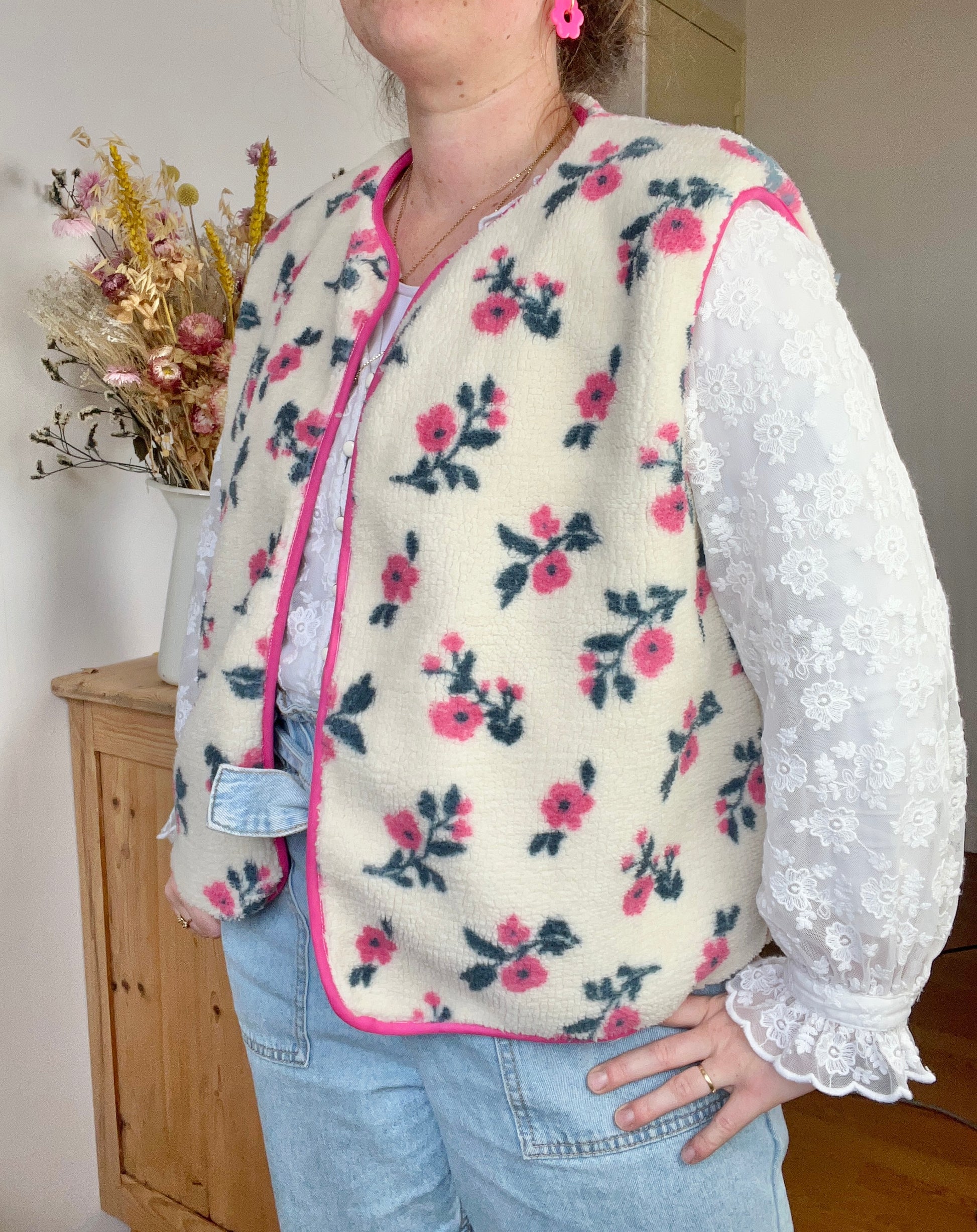 NOUVEAU ! Gilet fleuri Coraliane bordure et vichy fuchsia