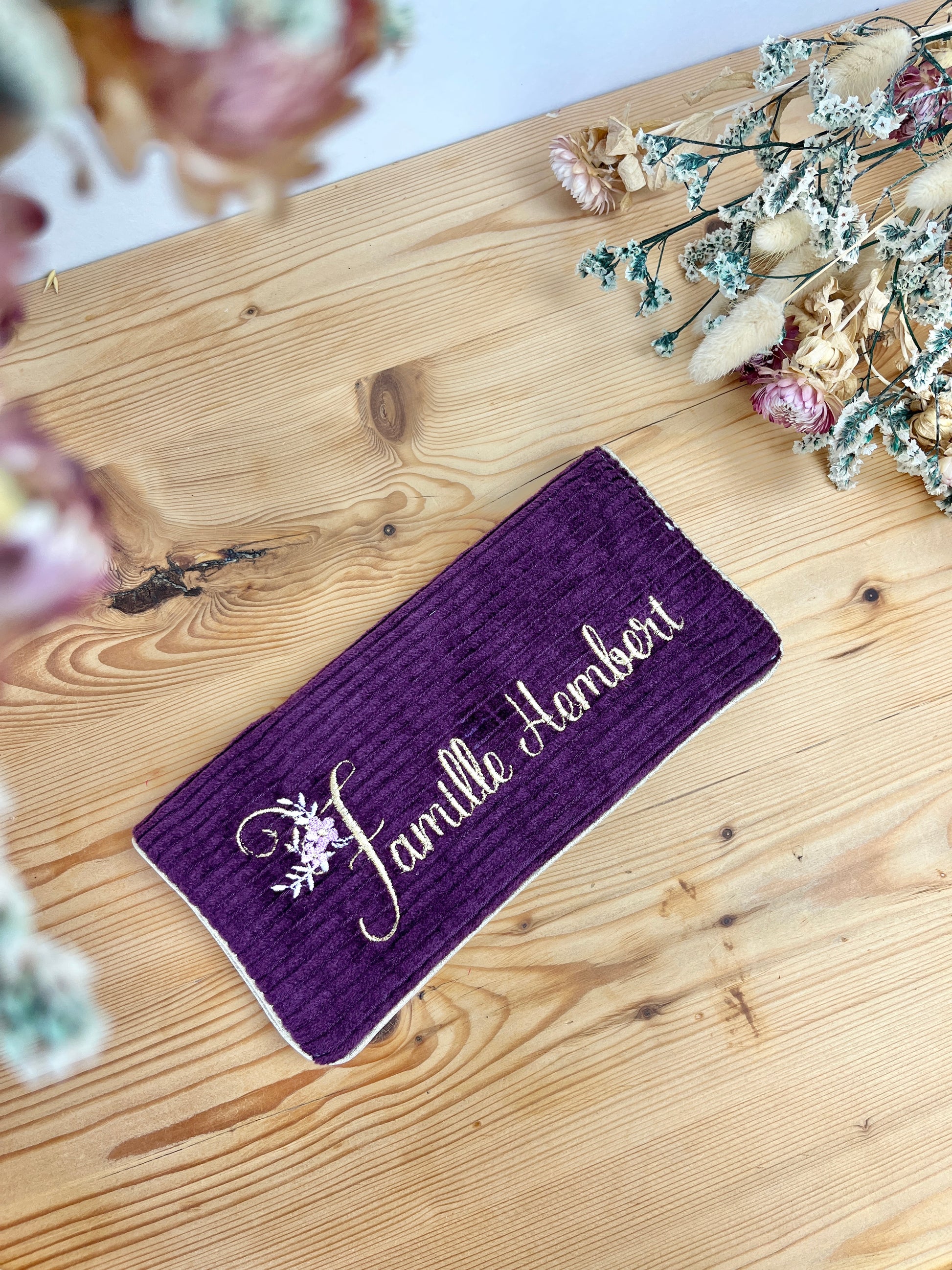 🪡 Broderie délicate : Inscription "Famille" brodée au fil doré, accompagnée d’une élégante majuscule florale.