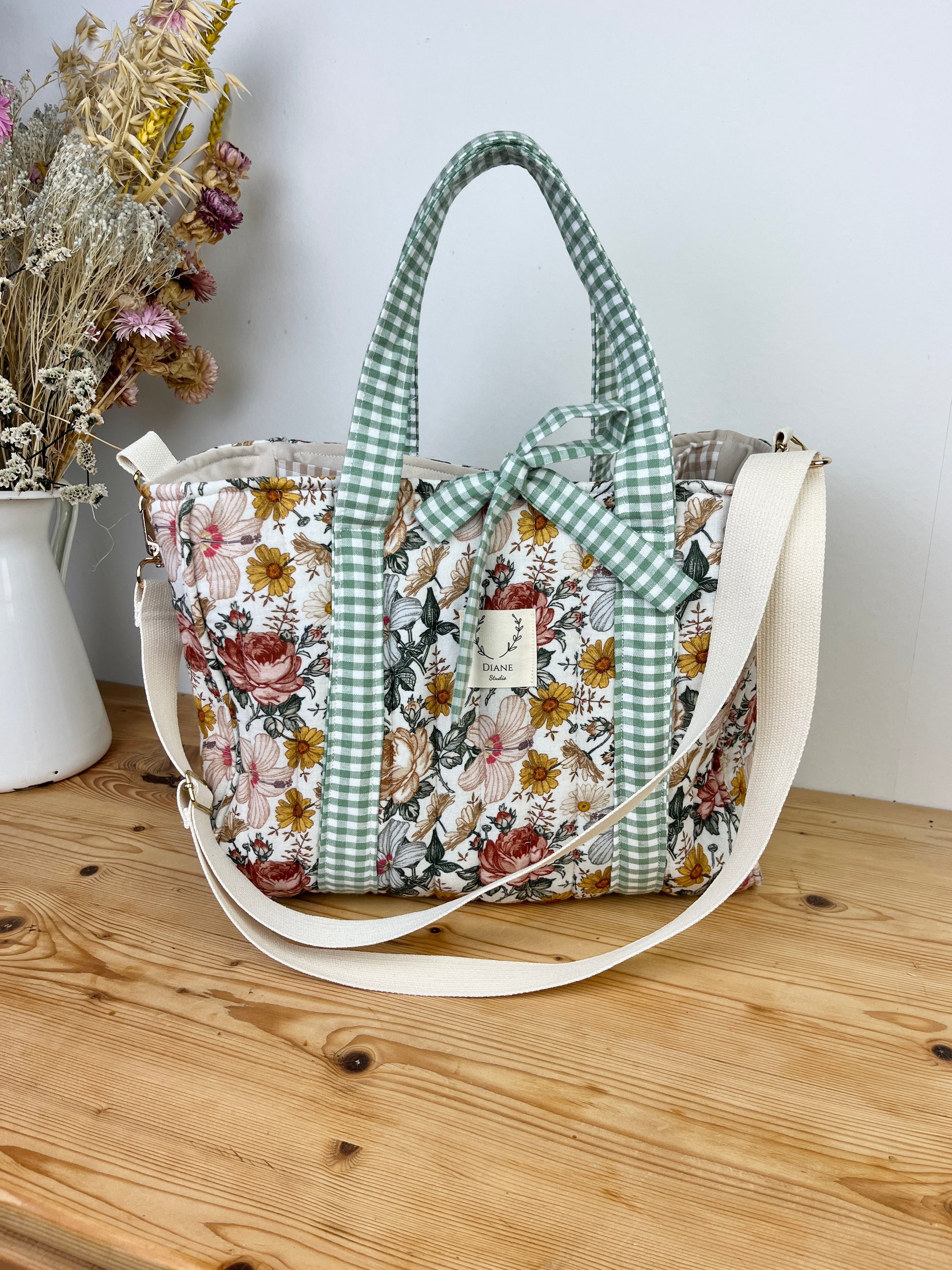 Ce joli sac à main matelassé, confectionné à la main dans un somptueux Liberty of London, est à la fois élégant, pratique et résolument féminin. On craque pour son petit nœud à nouer, son design pratique et élégant, et ses détails dorés subtils.
