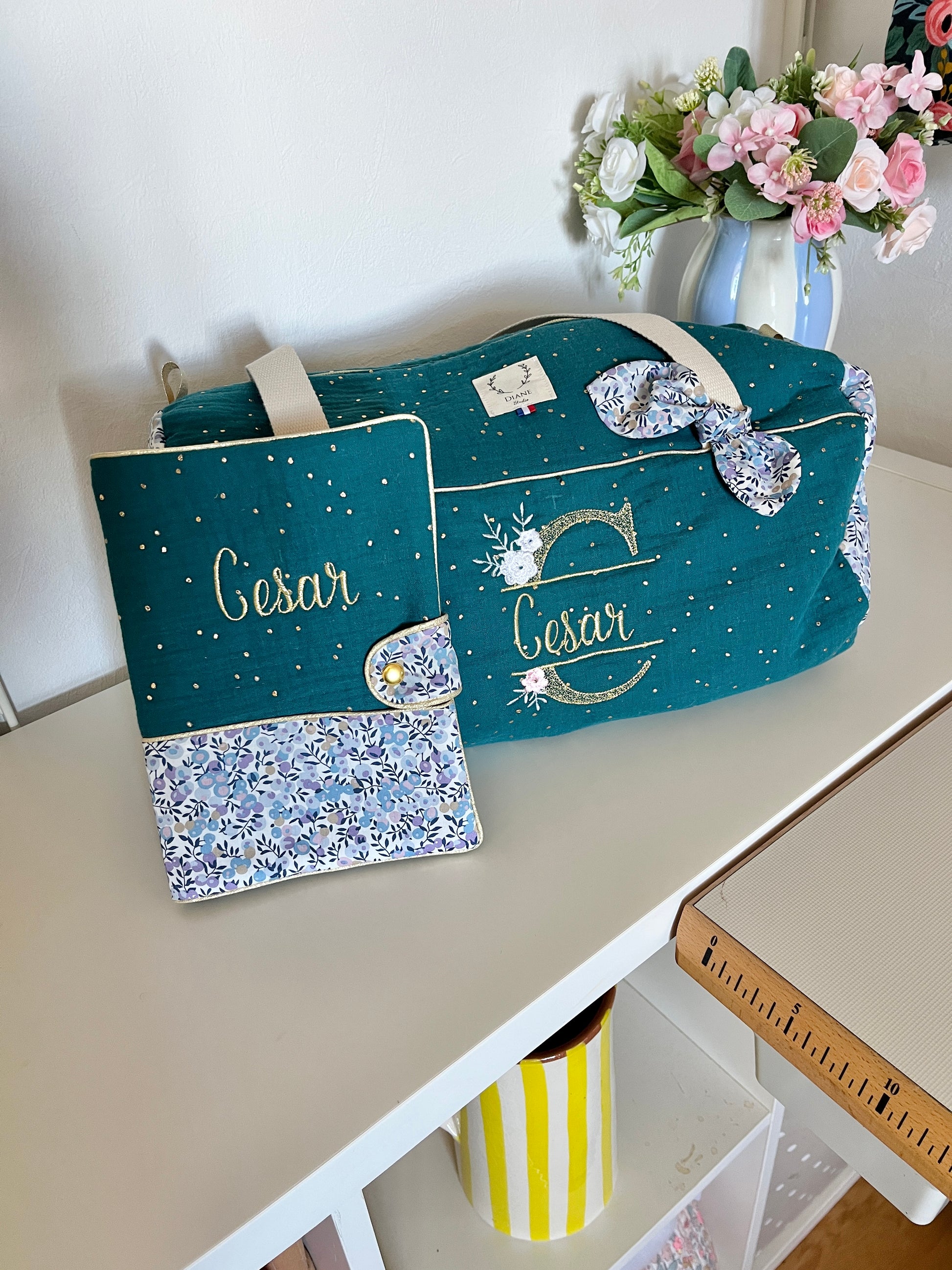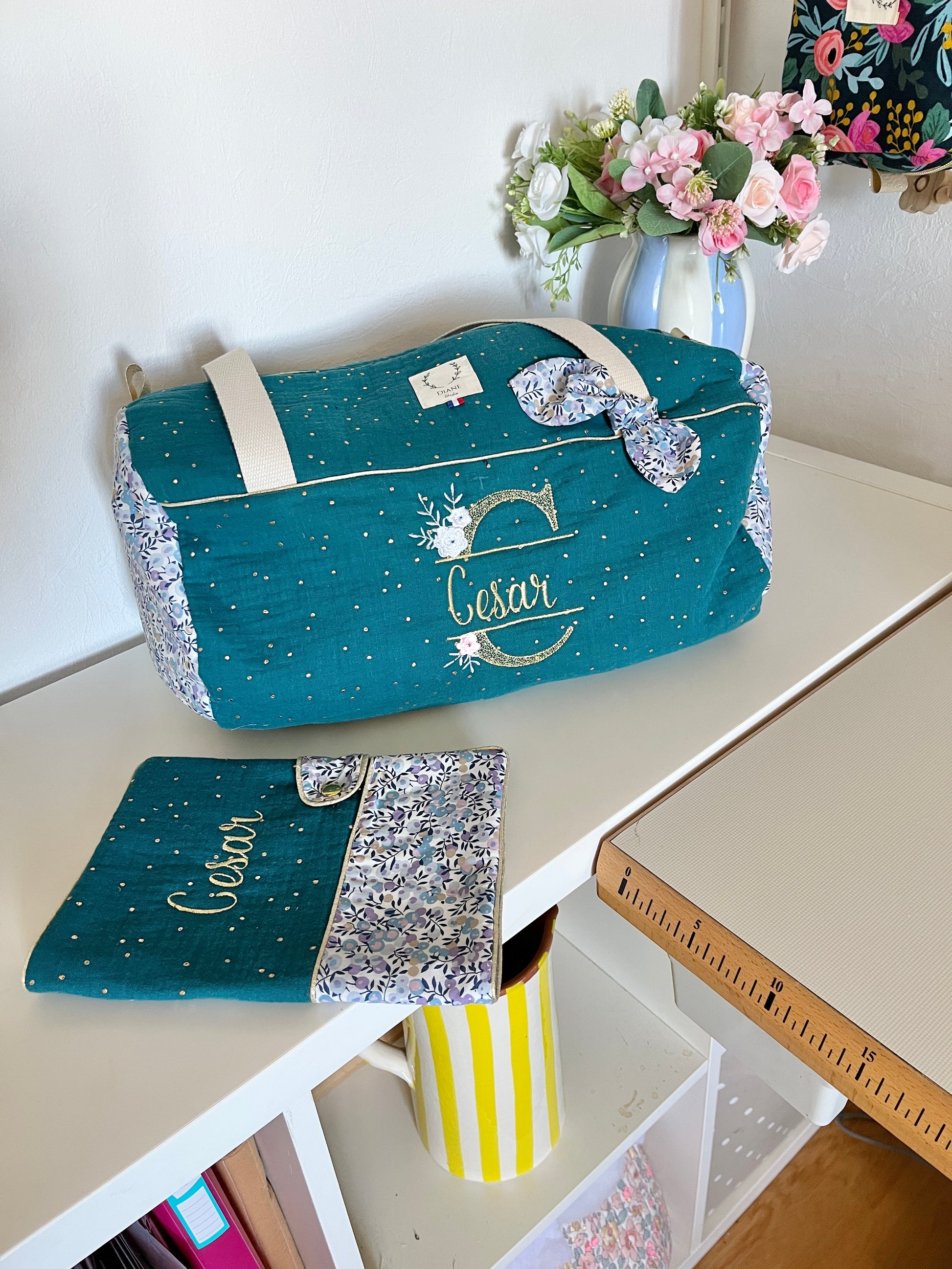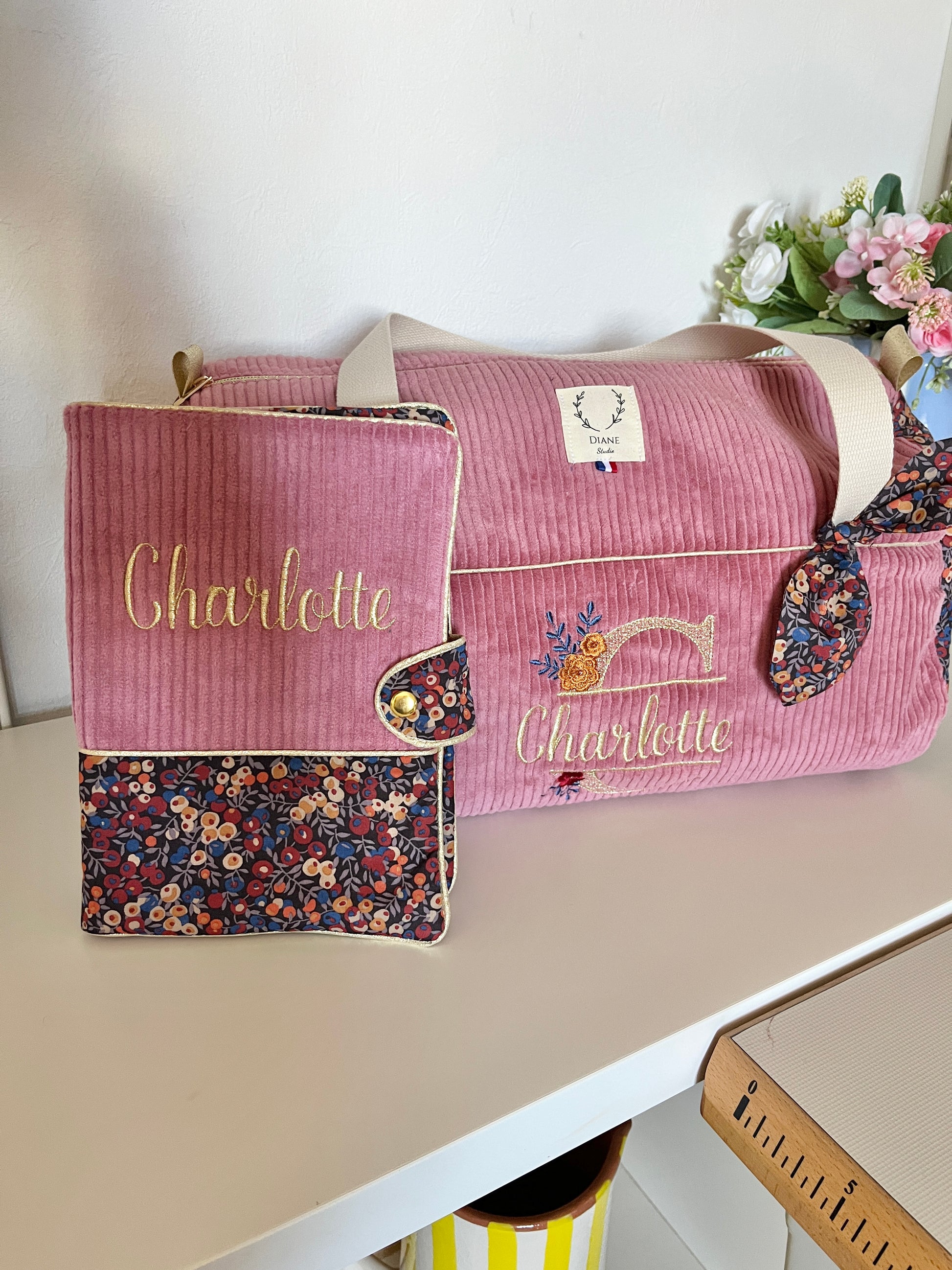 Ensemble: sac polochon initiale dentelle et protège carnet Personnalisable