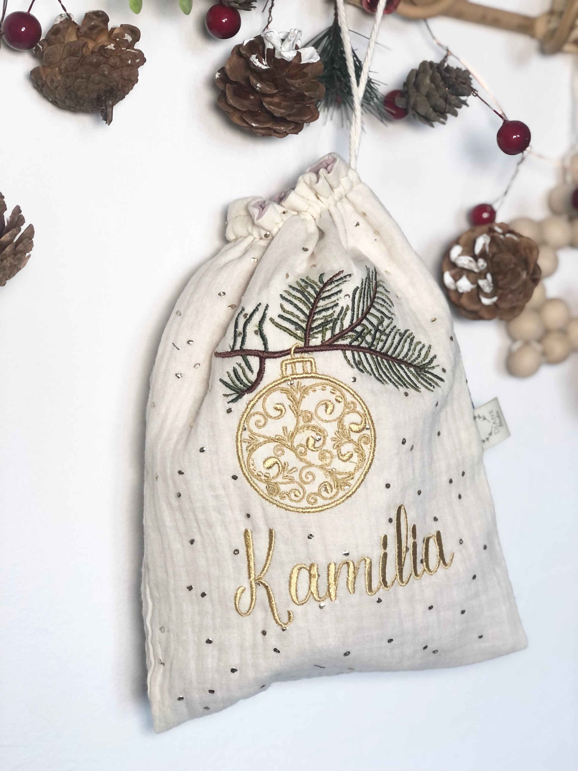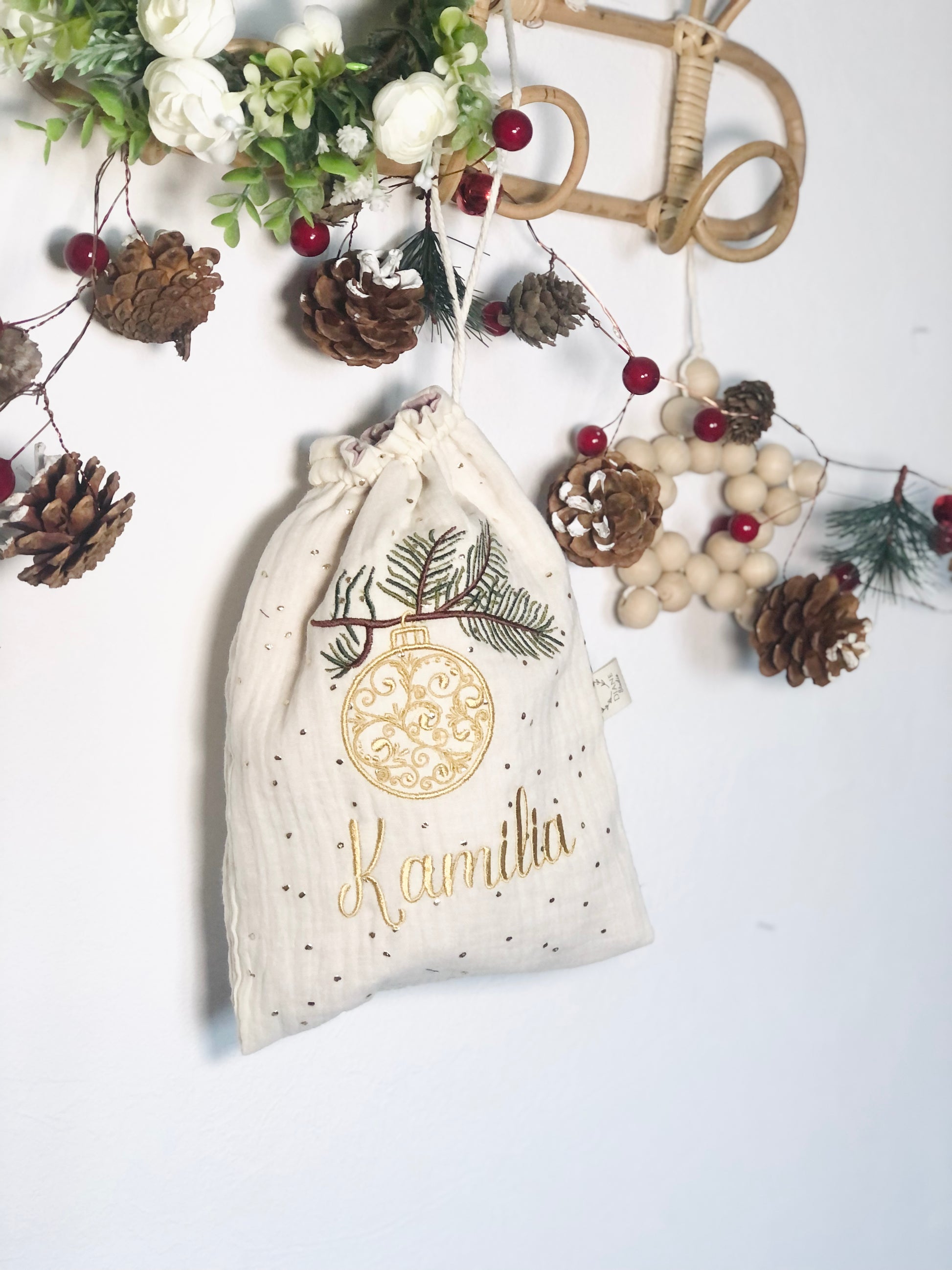 Le pochon de Noël double gaze crème 100% Personnalisable