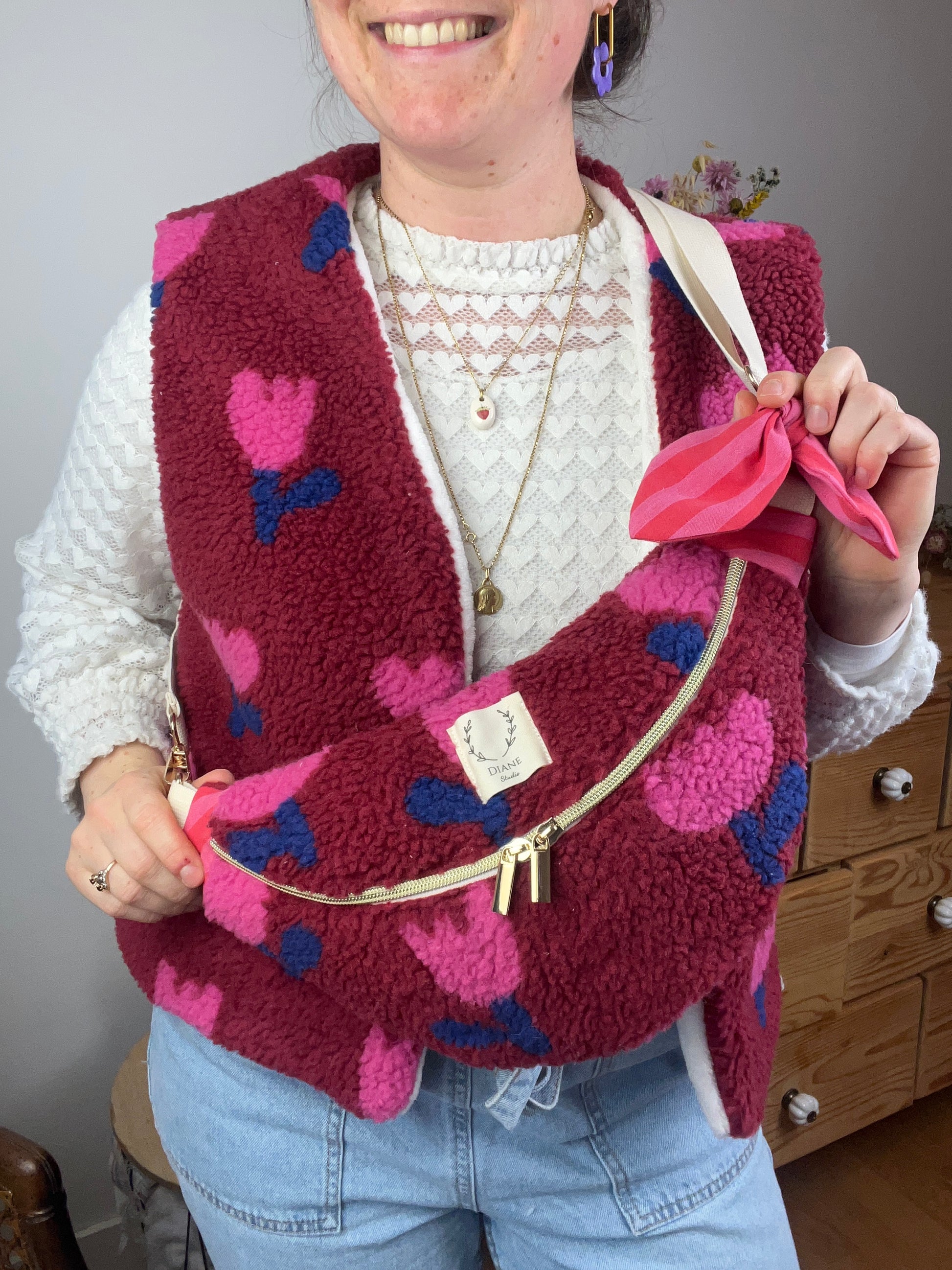 NOUVEAU ! Le sac banane Eléonore sherpa tulipes roses