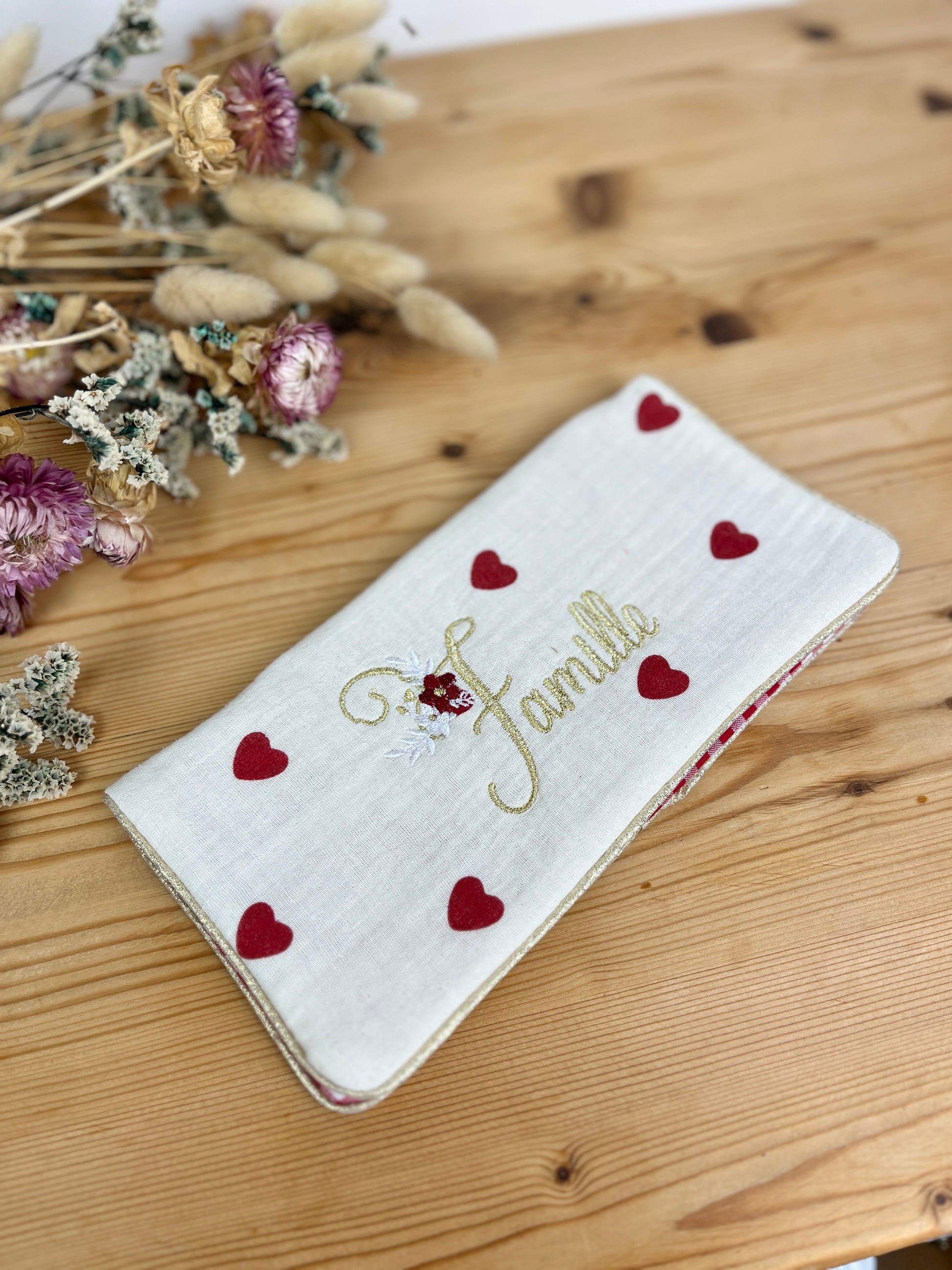 Protège livret de famille brodé modèle coeurs