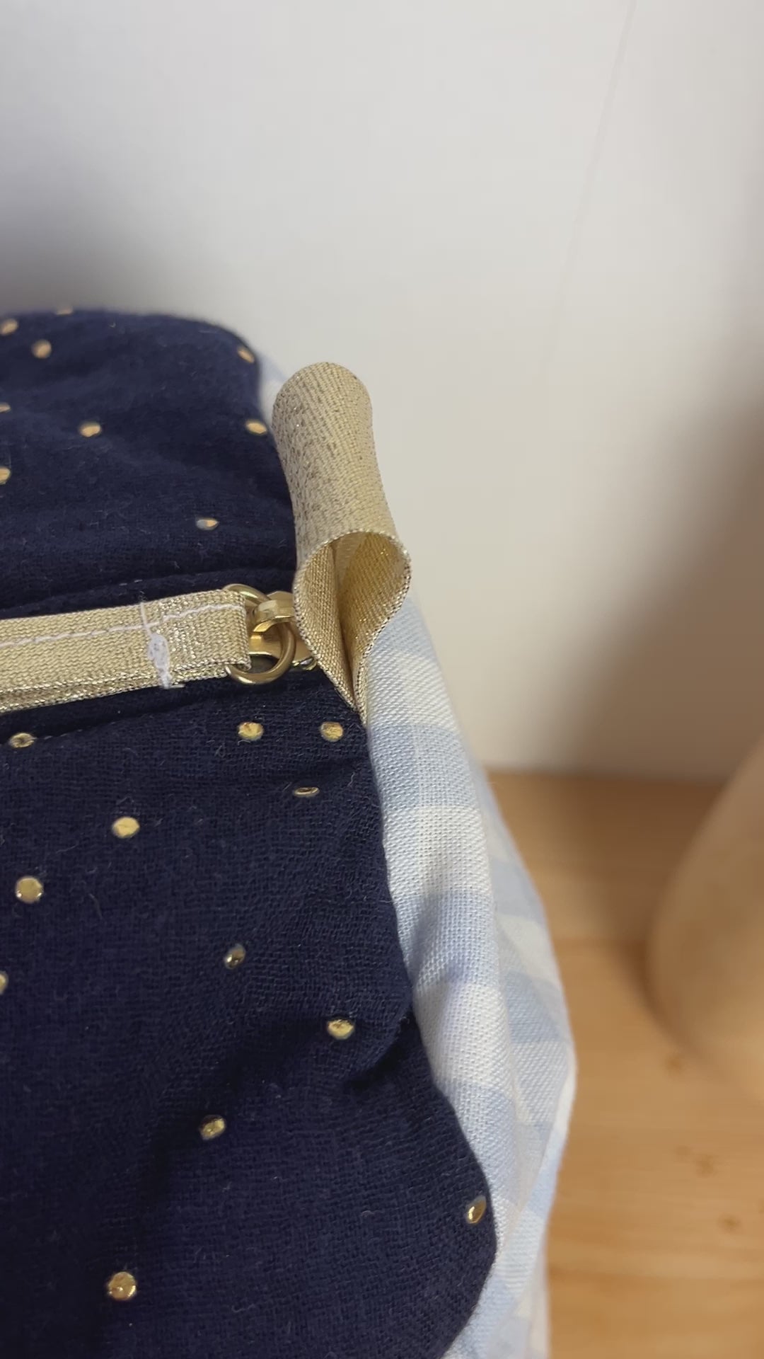 Louison le sac polochon enfant Bleu nuit doré et vichy Personnalisable