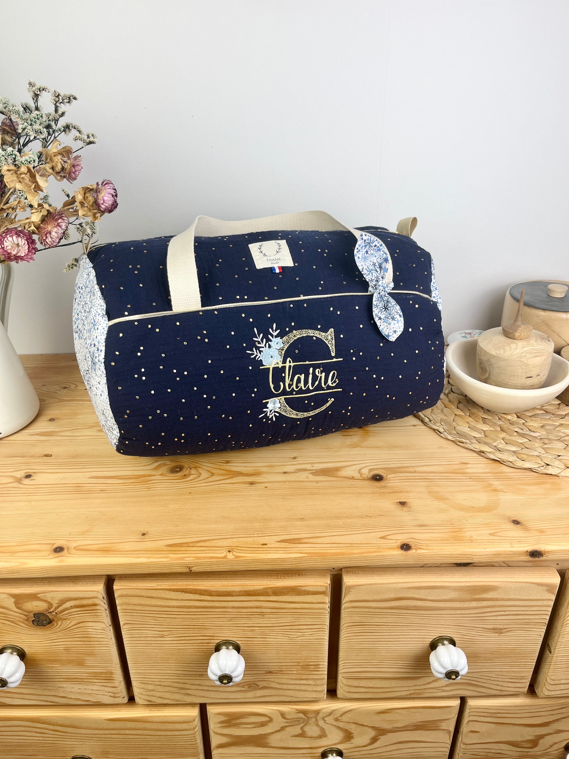 Louison le sac polochon bleu nuit et Adelajda bleu Personnalisable