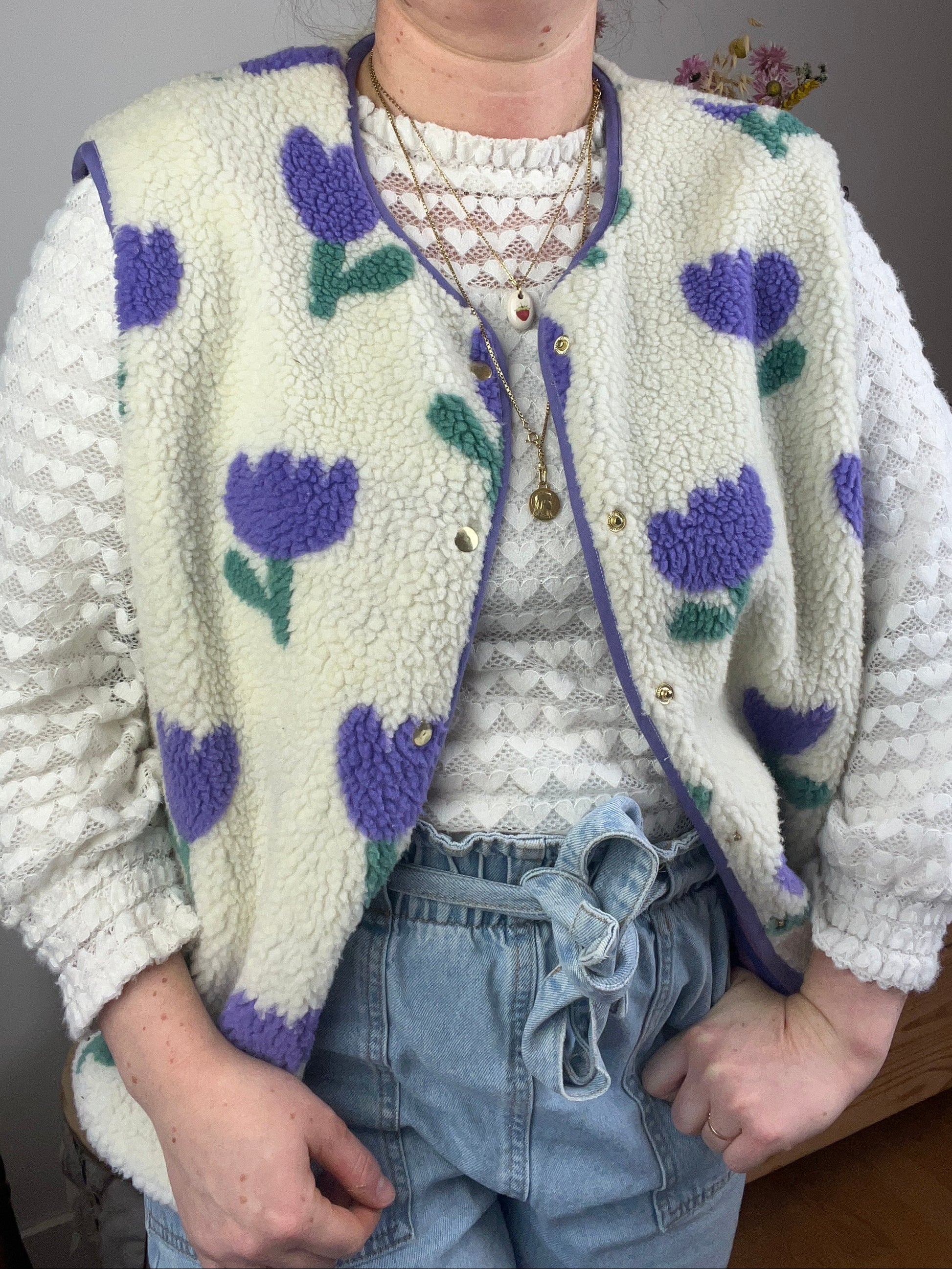 Le gilet Coraliane sherpa tulipes mauve -sur commande